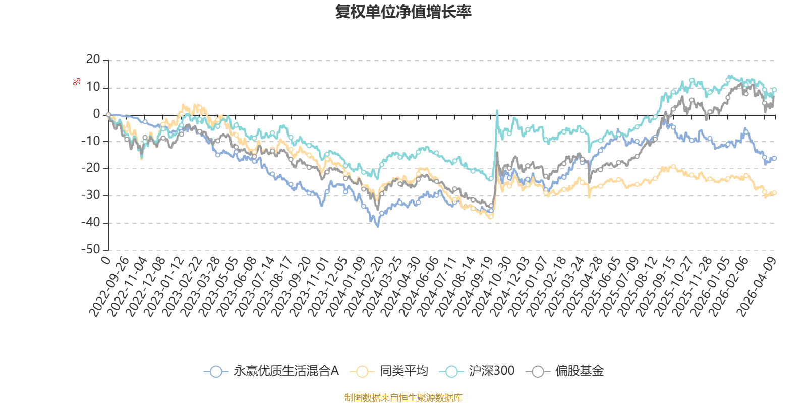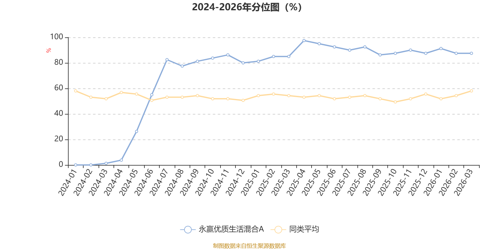 截至4月9日,永赢优质生活混合A近三个月复权单位净值增长率为-6.48%,位于同类可比基金27/85;近半年复权单位净值增长率为-7.67%,位于同类可比基金23/85;近一年复权单位净值增长率为2.43%,位于同类可比基金30/85;近三年复权单位净值增长率为-3.33%,位于同类可比基金7/76。