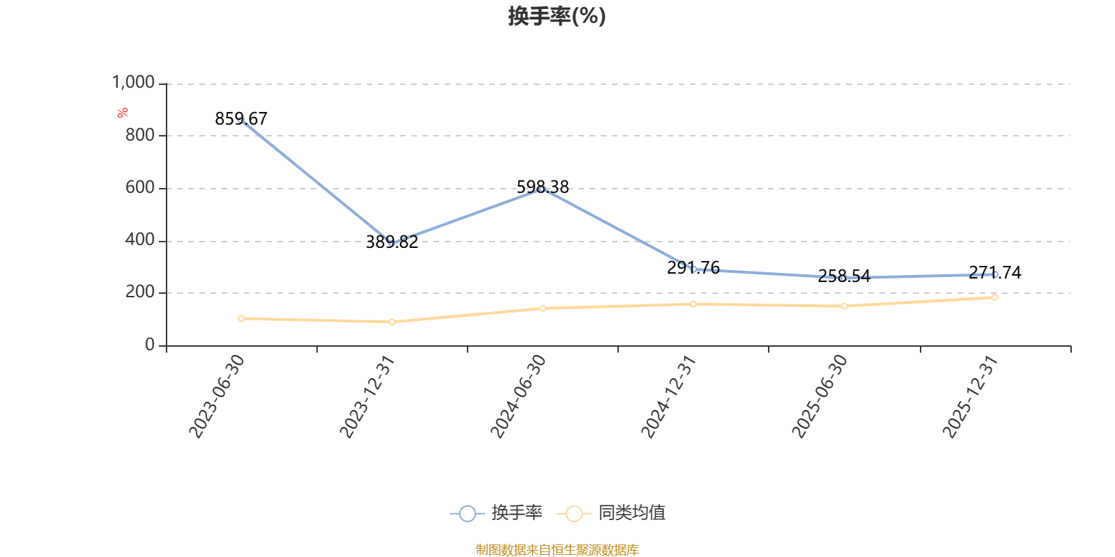 截至2025年12月31日,基金最近一年换手率约508.37%,持续高于同类均值。
