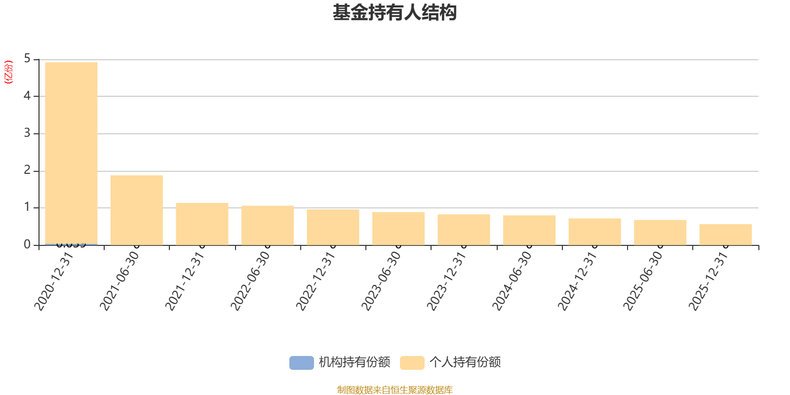截至2025年12月31日,基金持有人共计2404户,合计持有5653.93万份。其中管理人员工持有84.38万份,占比1.49%,机构持有份额占比0.00%,个人投资者占比100.00%。