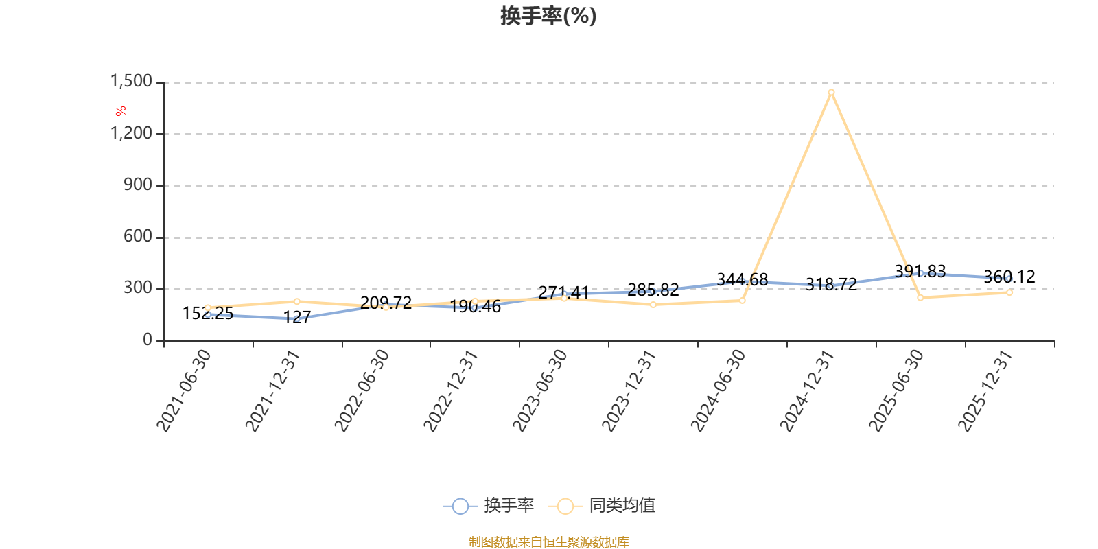 截至2025年12月31日,基金最近一年换手率约761.81%,持续1年高于同类均值。