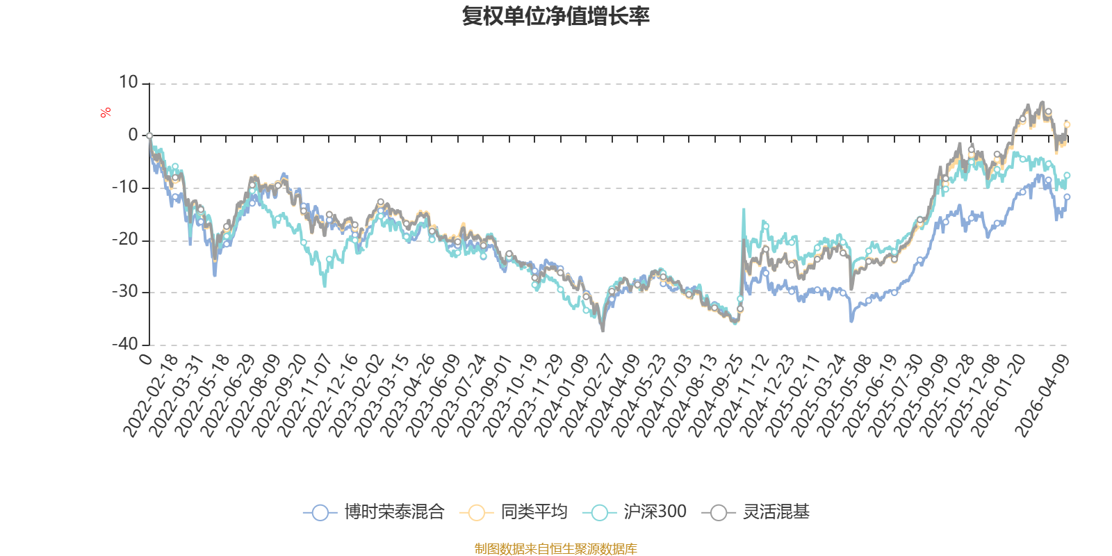 截至4月9日,博时荣泰混合近三个月复权单位净值增长率为-0.48%,位于同类可比基金628/1287;近半年复权单位净值增长率为1.63%,位于同类可比基金652/1286;近一年复权单位净值增长率为35.71%,位于同类可比基金549/1286;近三年复权单位净值增长率为6.05%,位于同类可比基金826/1286。