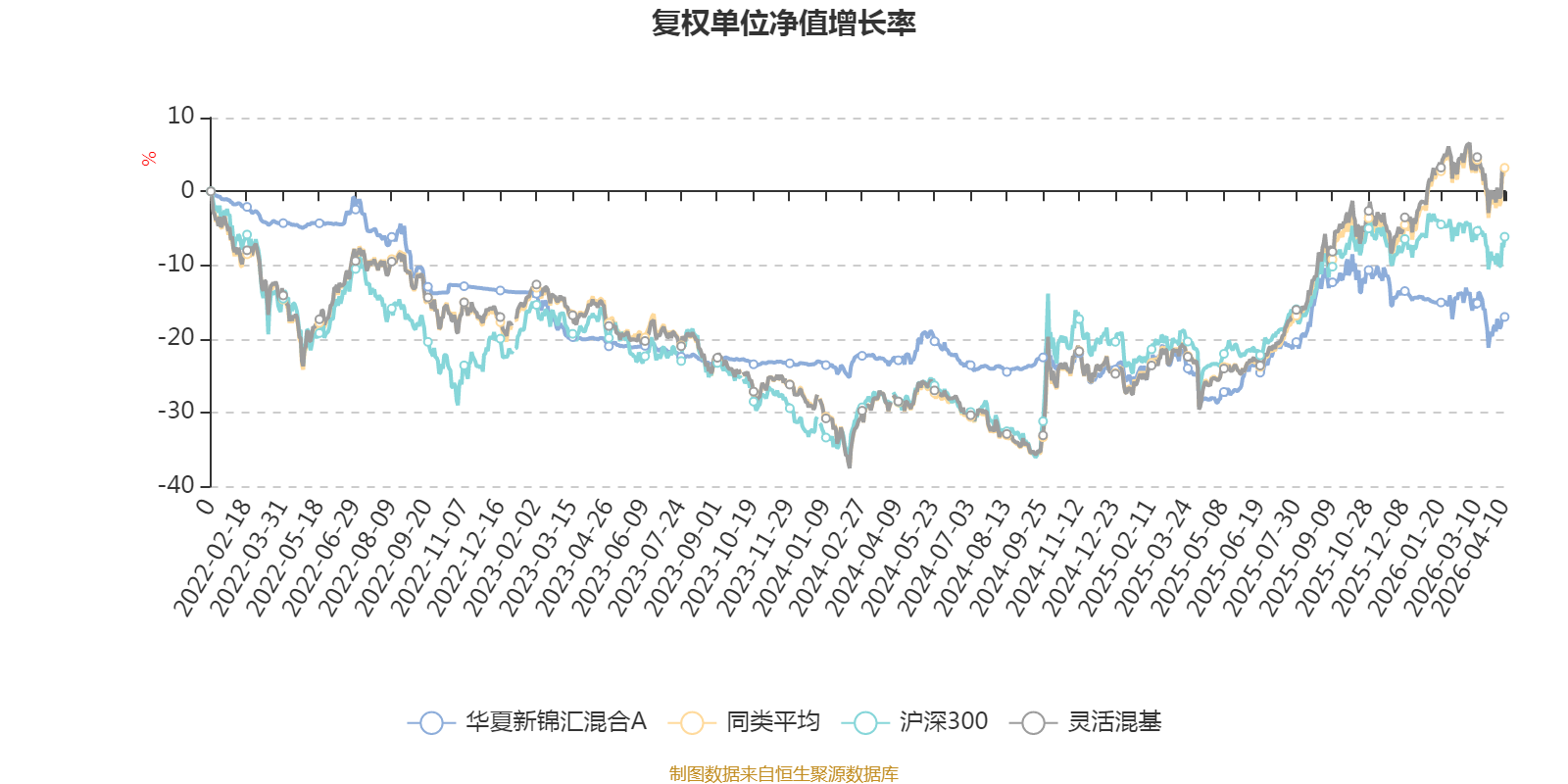 截至4月10日,华夏新锦汇混合A近三个月复权单位净值增长率为-2.46%,位于同类可比基金903/1287;近半年复权单位净值增长率为-6.88%,位于同类可比基金1162/1286;近一年复权单位净值增长率为15.60%,位于同类可比基金934/1286;近三年复权单位净值增长率为3.65%,位于同类可比基金920/1286。