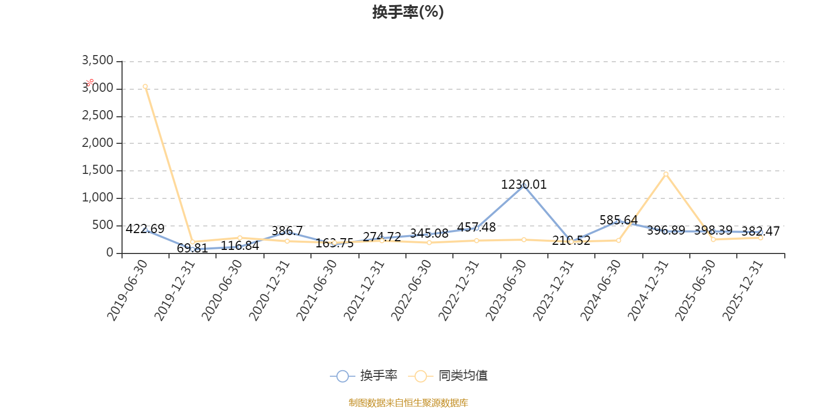 截至2025年12月31日,基金最近一年换手率约817.89%,持续1年高于同类均值。