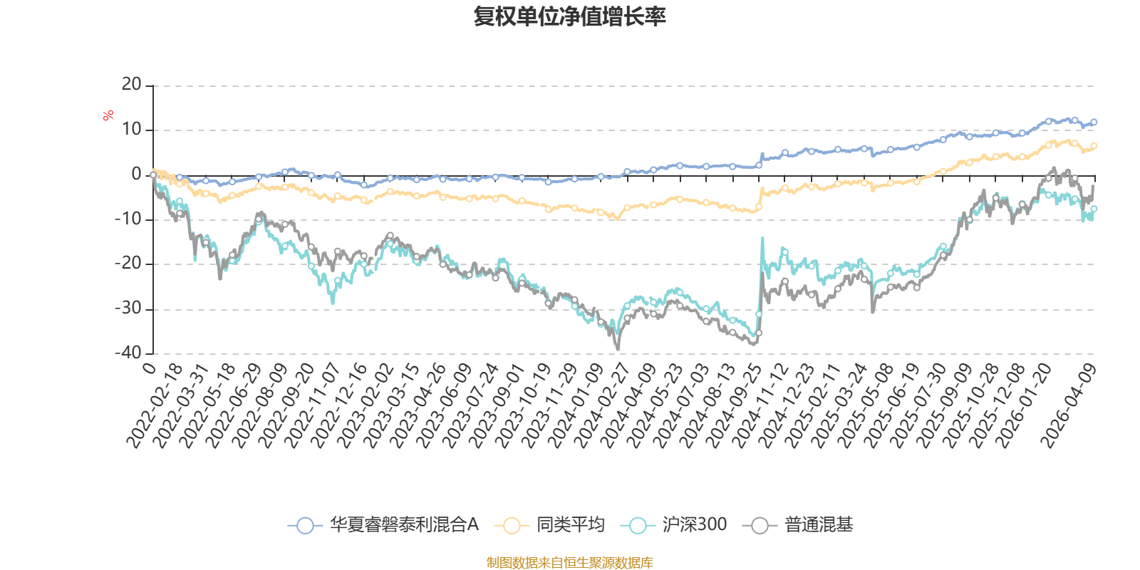 截至4月9日,华夏睿磐泰利混合A近三个月复权单位净值增长率为0.22%,位于同类可比基金306/629;近半年复权单位净值增长率为2.67%,位于同类可比基金140/629;近一年复权单位净值增长率为7.21%,位于同类可比基金312/629;近三年复权单位净值增长率为12.52%,位于同类可比基金224/581。