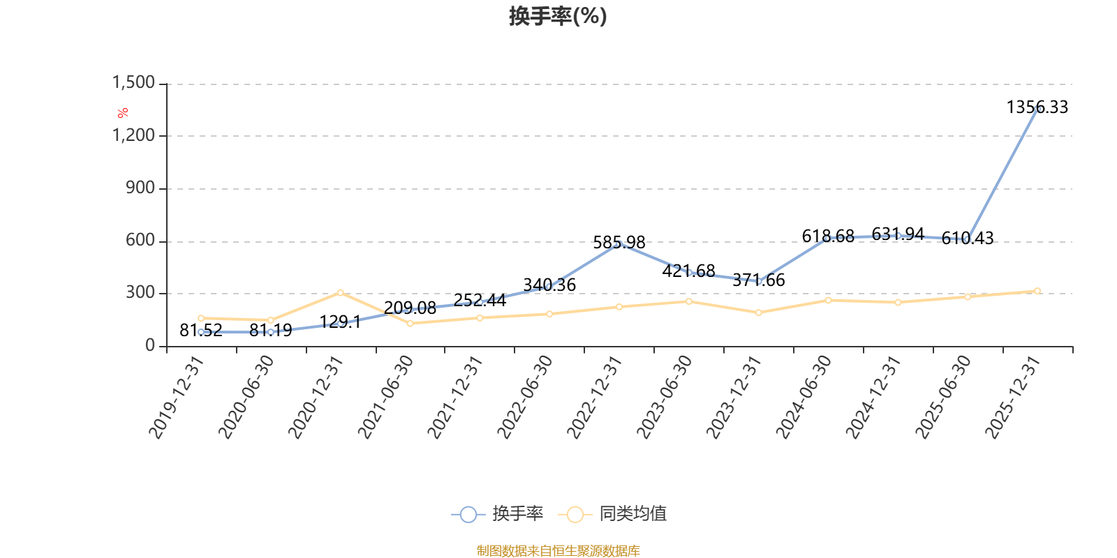 截至2025年12月31日,基金最近一年换手率约1873.2%,持续5年高于同类均值。