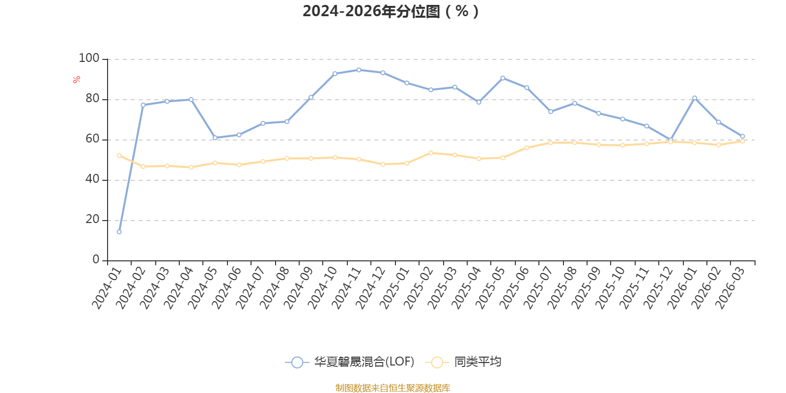 通过所选区间该基金净值增长率分位图,可以观察该基金与同类基金业绩比较情况。图为坐标原点到区间内某时点的净值增长率在同类基金中的分位数。