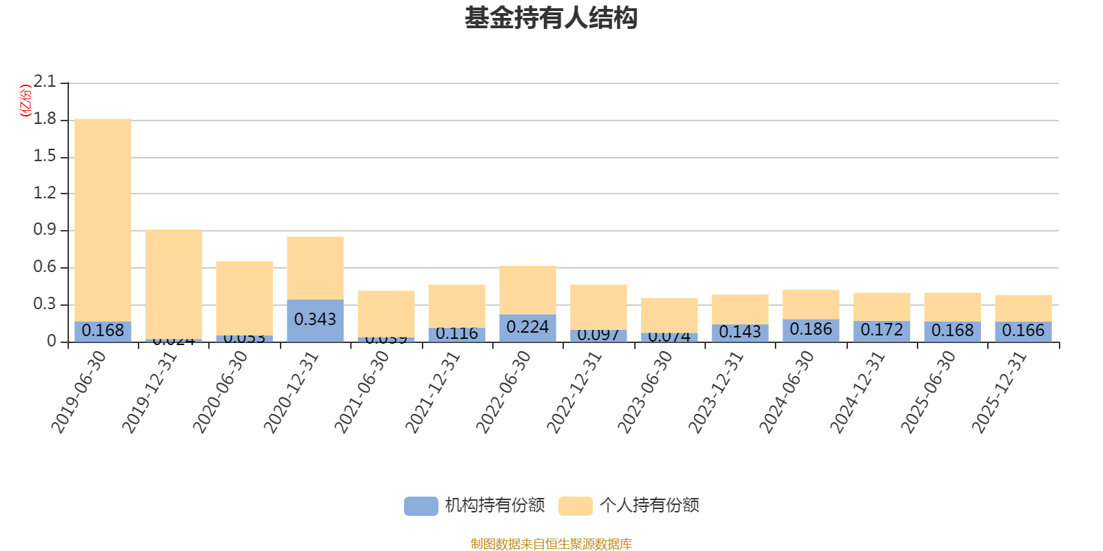 截至2025年12月31日,基金持有人共计1872户,合计持有3798.32万份。其中管理人员工持有22.98万份,占比0.61%,机构持有份额占比43.79%,个人投资者占比56.21%。