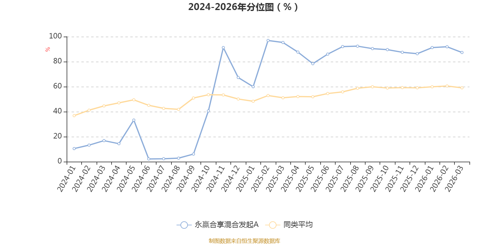 通过所选区间该基金净值增长率分位图,可以观察该基金与同类基金业绩比较情况。图为坐标原点到区间内某时点的净值增长率在同类基金中的分位数。