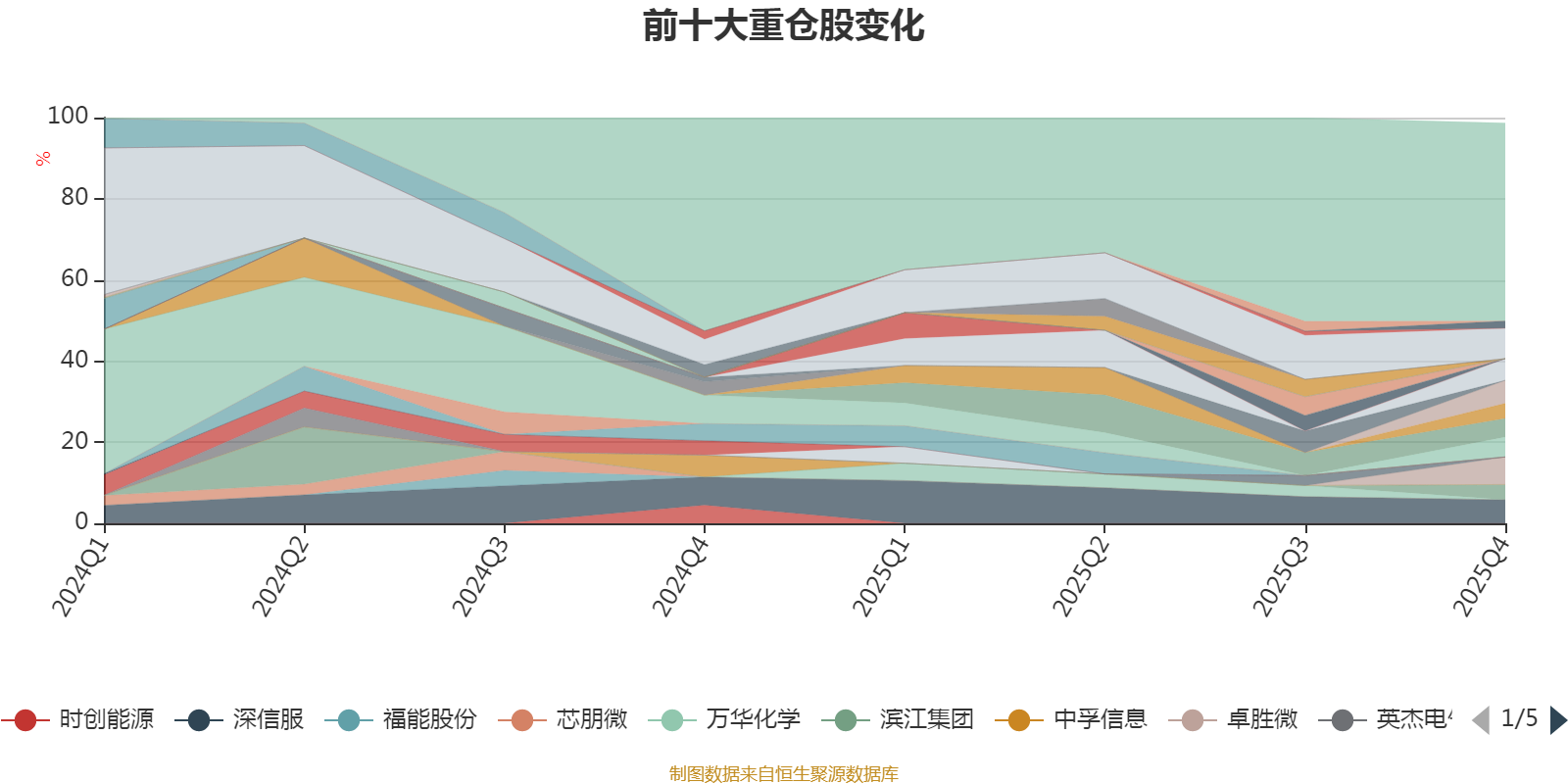 截至2025年末,基金十大重仓股分别是鼎龙股份、卓胜微、深信服、理想汽车-W、乐鑫科技、荣盛石化、协鑫科技、滨江集团、龙湖集团、紫金矿业。