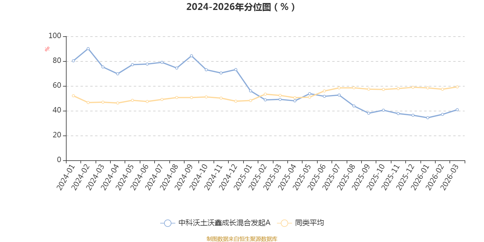 通过所选区间该基金净值增长率分位图,可以观察该基金与同类基金业绩比较情况。图为坐标原点到区间内某时点的净值增长率在同类基金中的分位数。