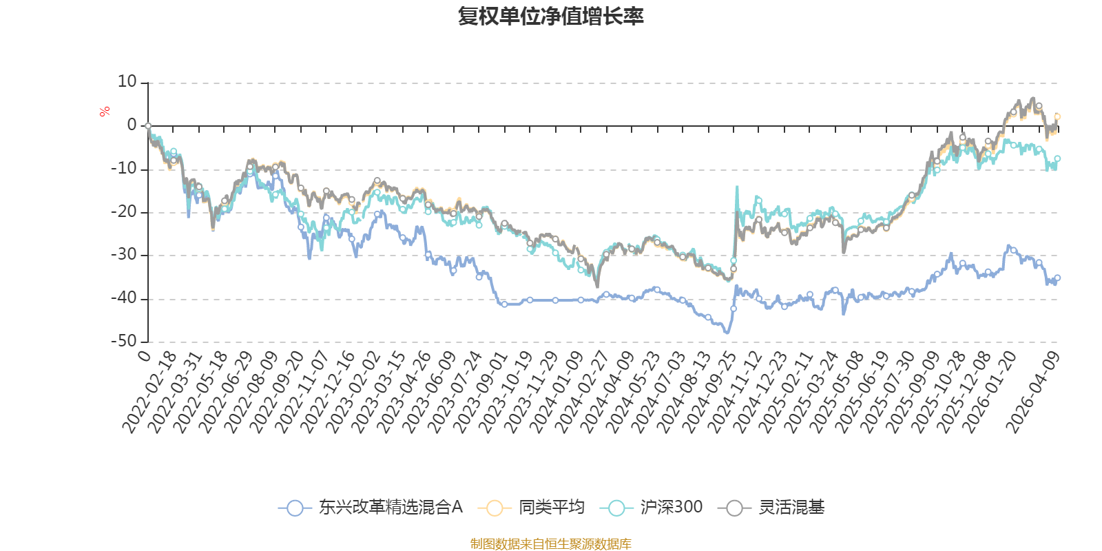截至4月9日,东兴改革精选混合A近三个月复权单位净值增长率为-8.75%,位于同类可比基金1158/1287;近半年复权单位净值增长率为-8.35%,位于同类可比基金1139/1286;近一年复权单位净值增长率为12.67%,位于同类可比基金997/1286;近三年复权单位净值增长率为-15.58%,位于同类可比基金1158/1286。