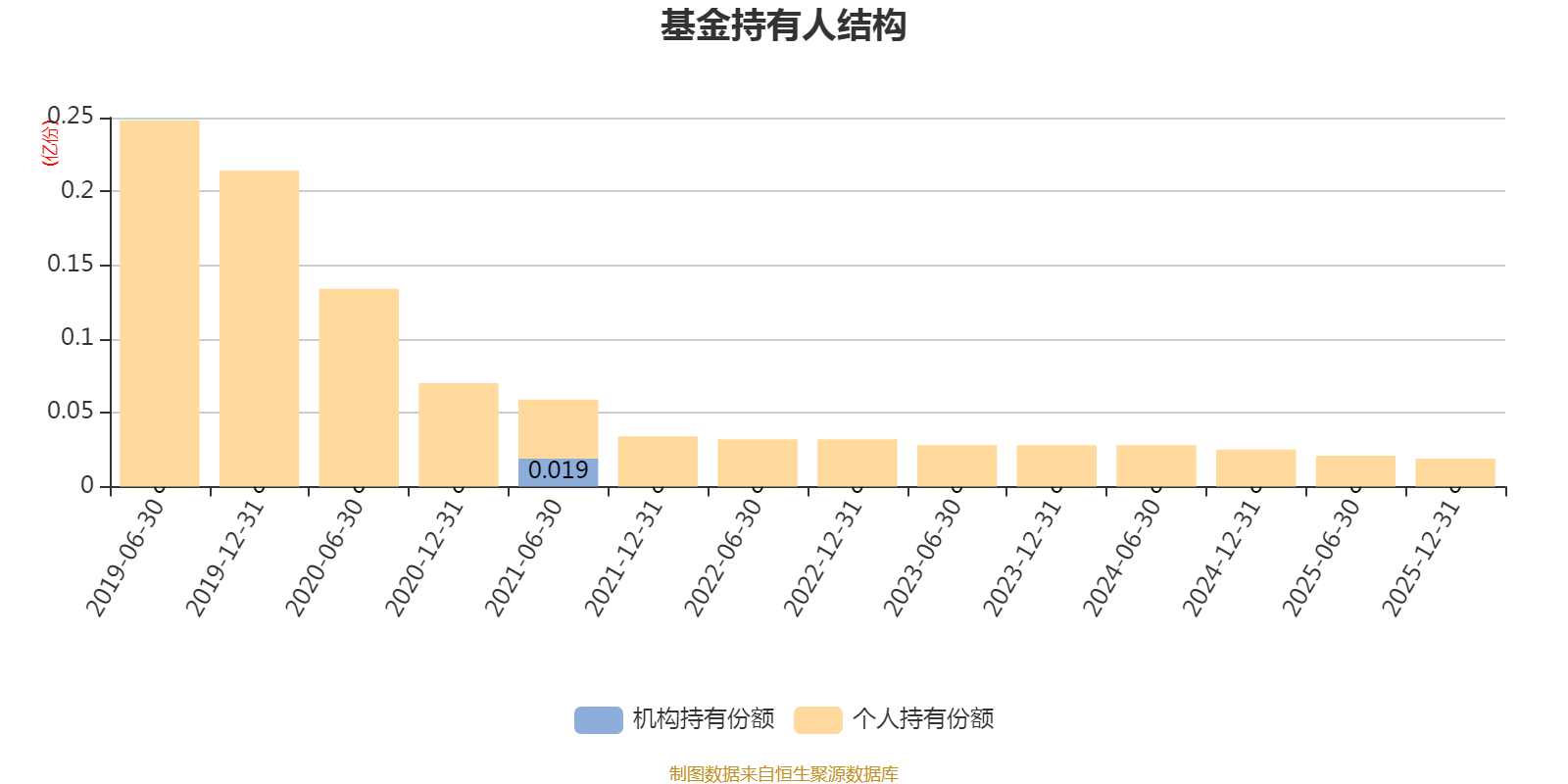 截至2025年12月31日,基金持有人共计264户,合计持有186.27万份。其中管理人员工持有2.36万份,占比1.26%,机构持有份额占比0.03%,个人投资者占比99.97%。