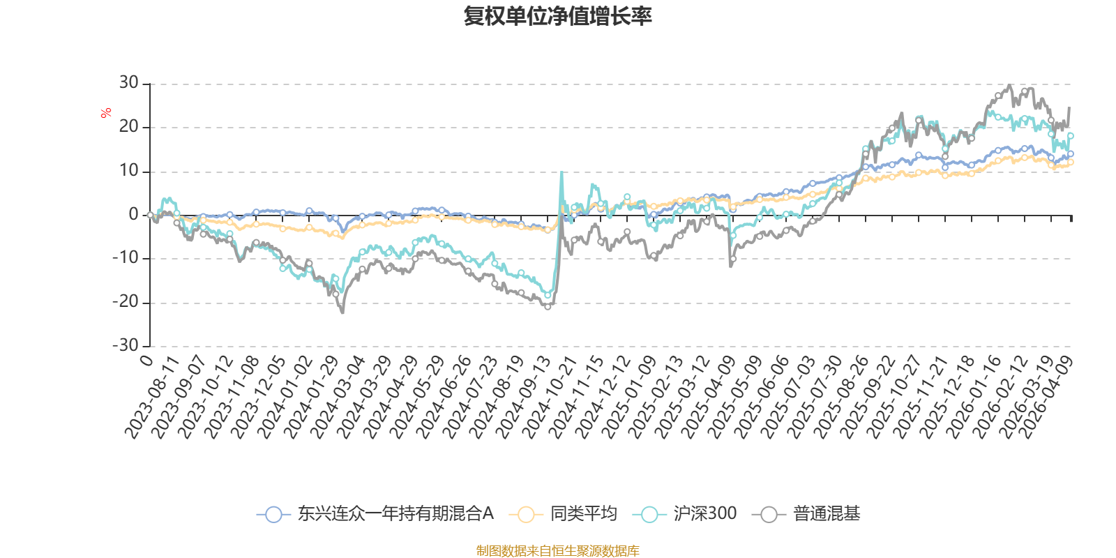 截至4月9日,东兴连众一年持有期混合A近三个月复权单位净值增长率为-0.15%,位于同类可比基金379/629;近半年复权单位净值增长率为0.92%,位于同类可比基金327/629;近一年复权单位净值增长率为12.61%,位于同类可比基金109/629。