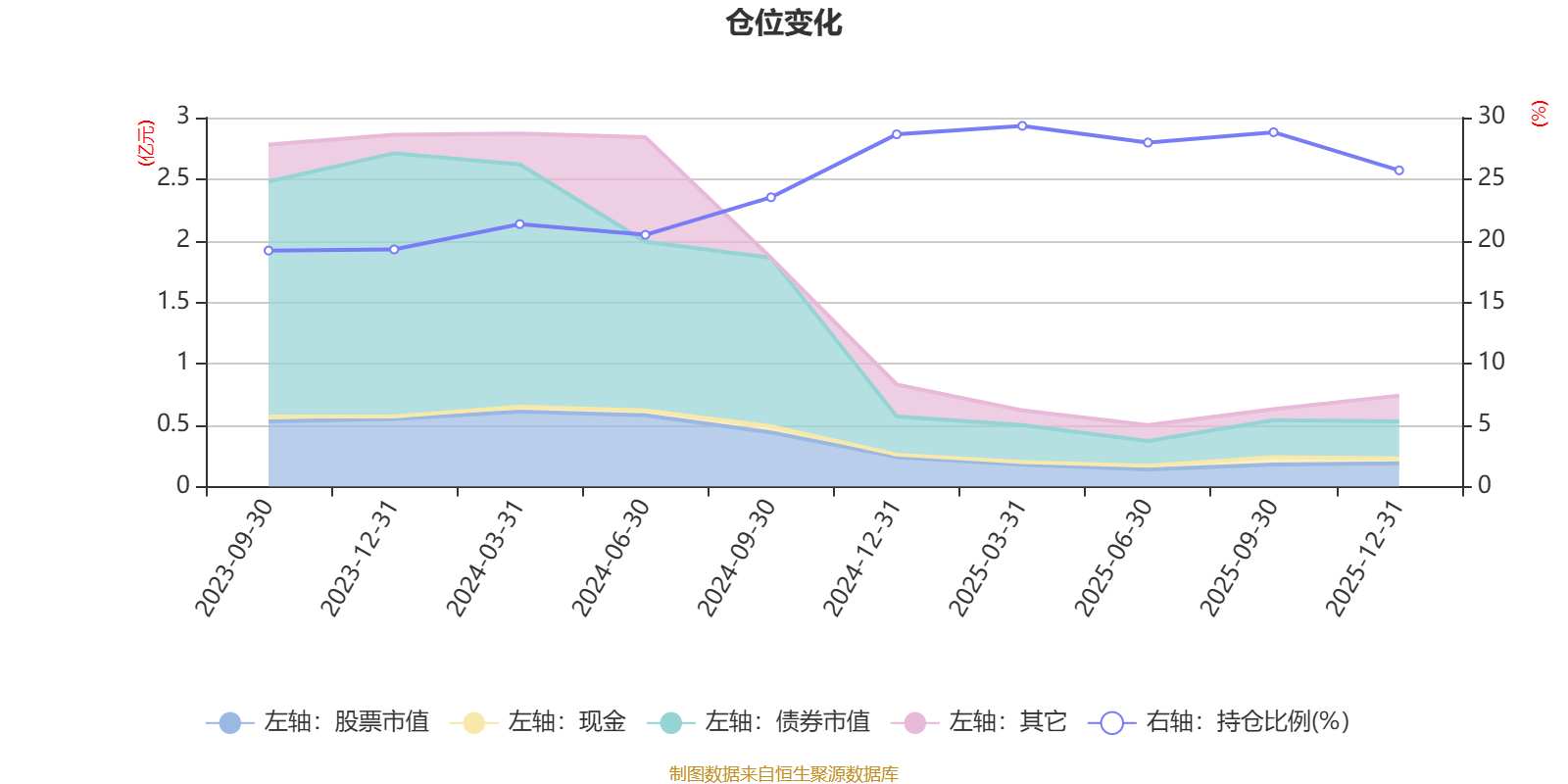 据定期报告数据统计,成立以来平均股票仓位为24.43%,同类平均为19.2%。2025年一季度末基金达到29.33%的最高仓位,2023年三季度末最低,为19.19%。