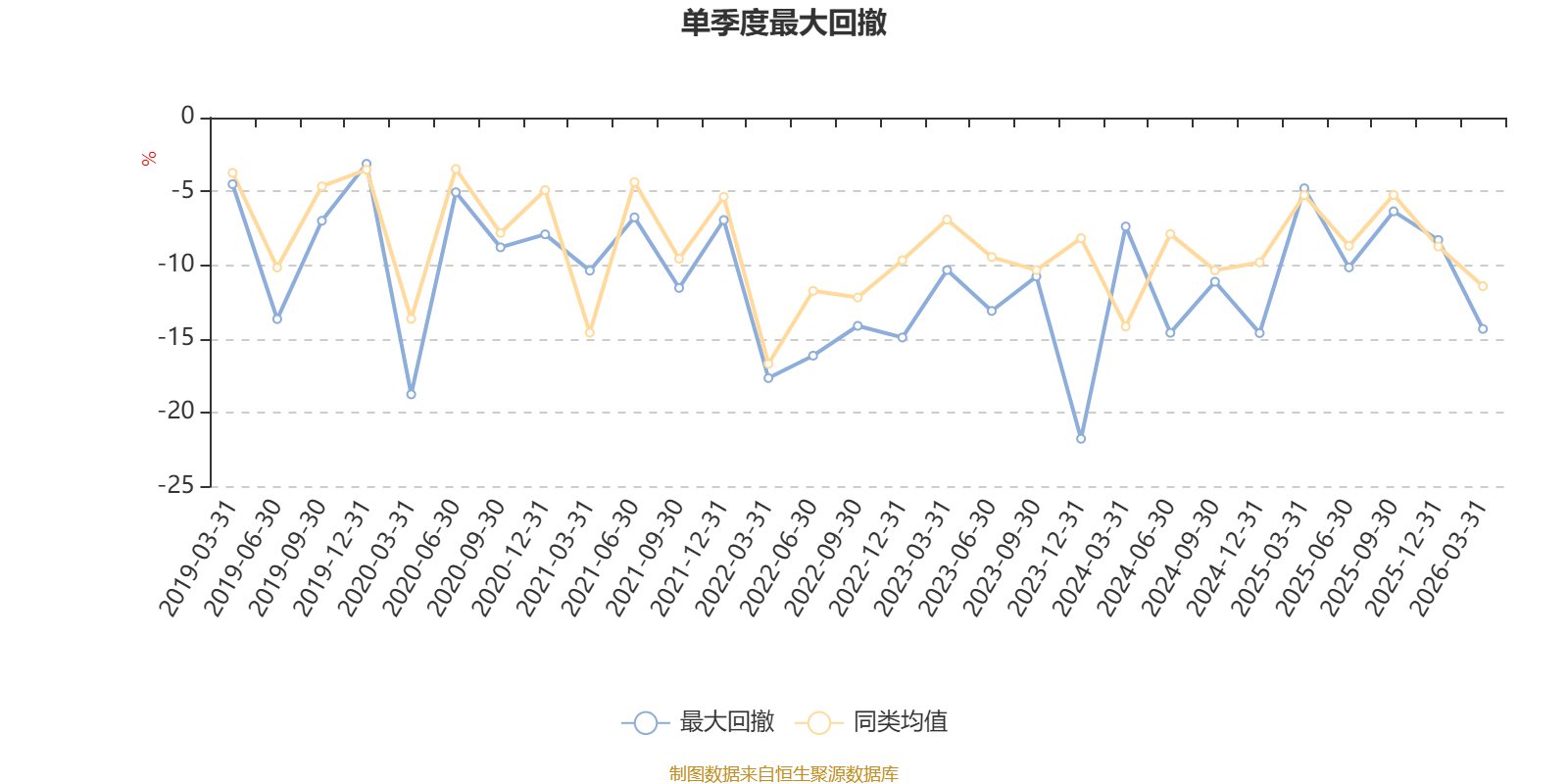 通过所选区间该基金净值增长率分位图,可以观察该基金与同类基金业绩比较情况。图为坐标原点到区间内某时点的净值增长率在同类基金中的分位数。