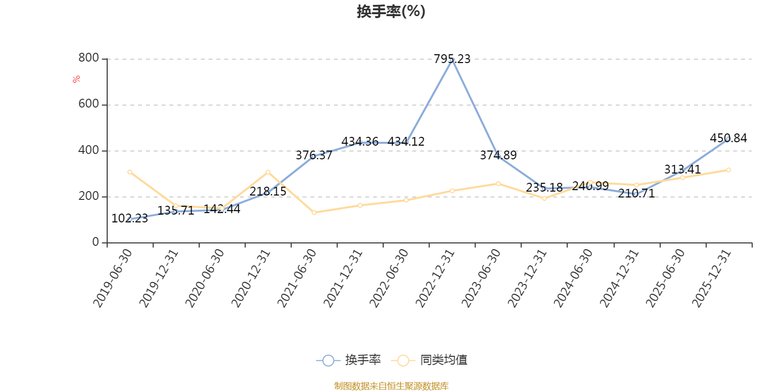 截至2025年12月31日,基金最近一年换手率约736.96%,持续1年高于同类均值。