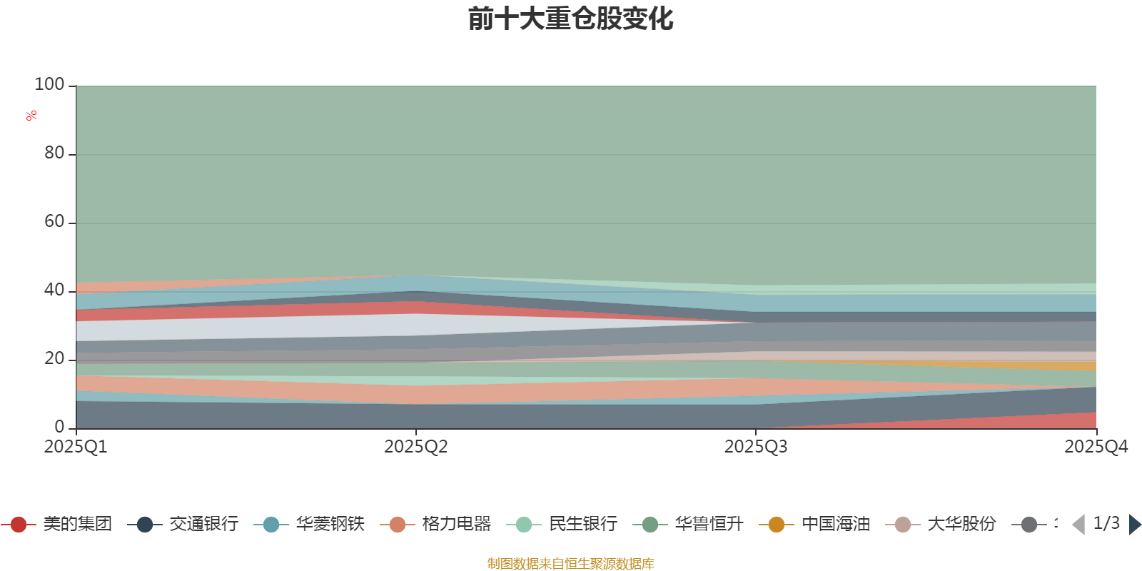 截至2025年末,基金十大重仓股分别是交通银行、平高电气、兴业银行、美的集团、华鲁恒升、华润双鹤、涪陵榨菜、大华股份、中国中铁、中国海油。