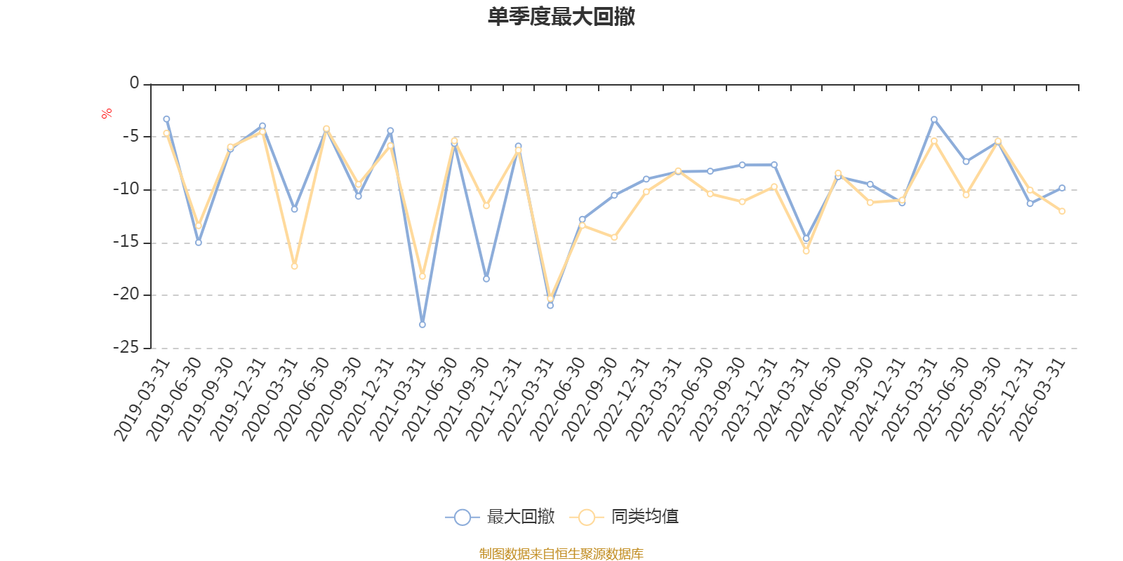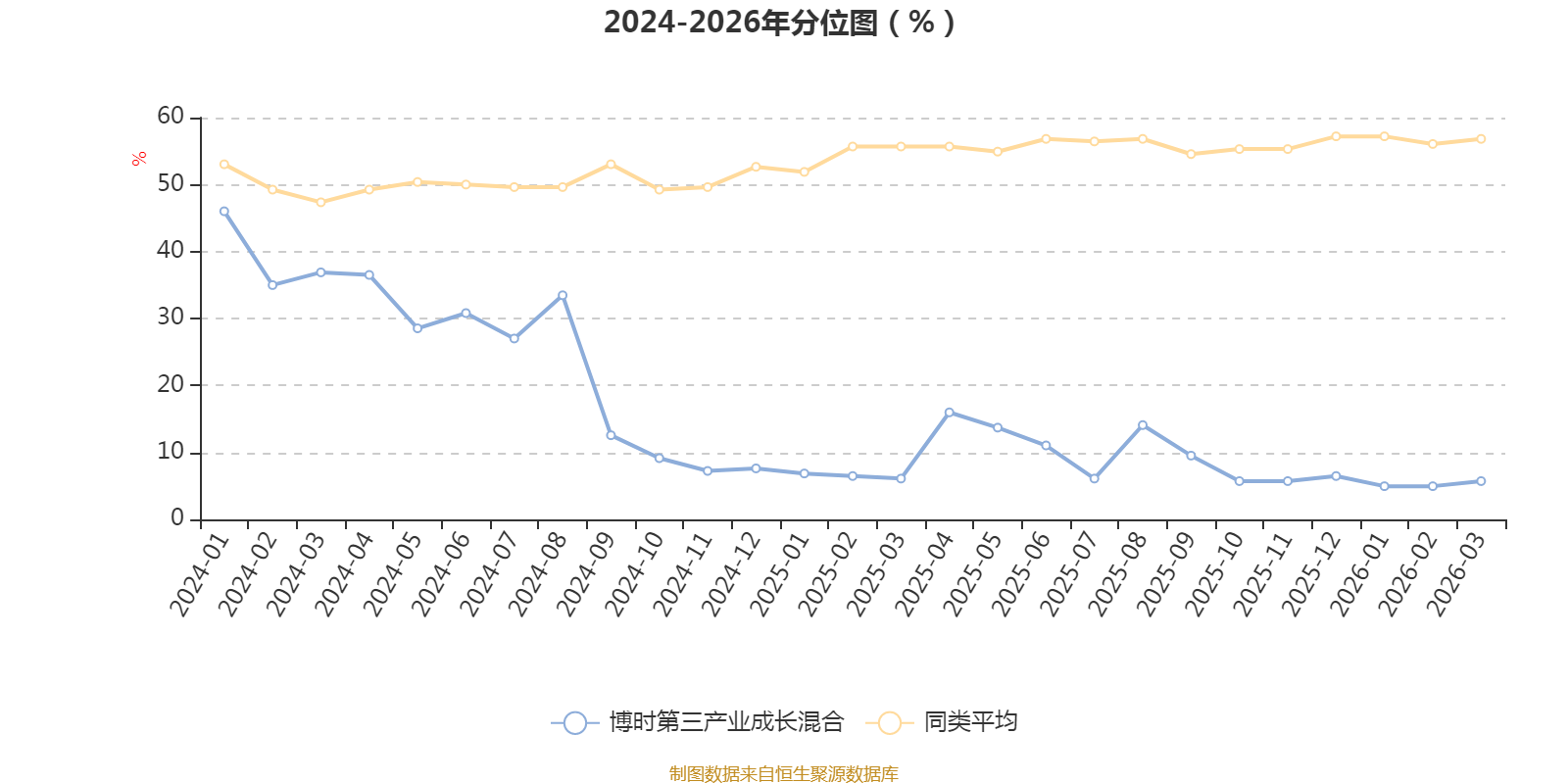 通过所选区间该基金净值增长率分位图,可以观察该基金与同类基金业绩比较情况。图为坐标原点到区间内某时点的净值增长率在同类基金中的分位数。