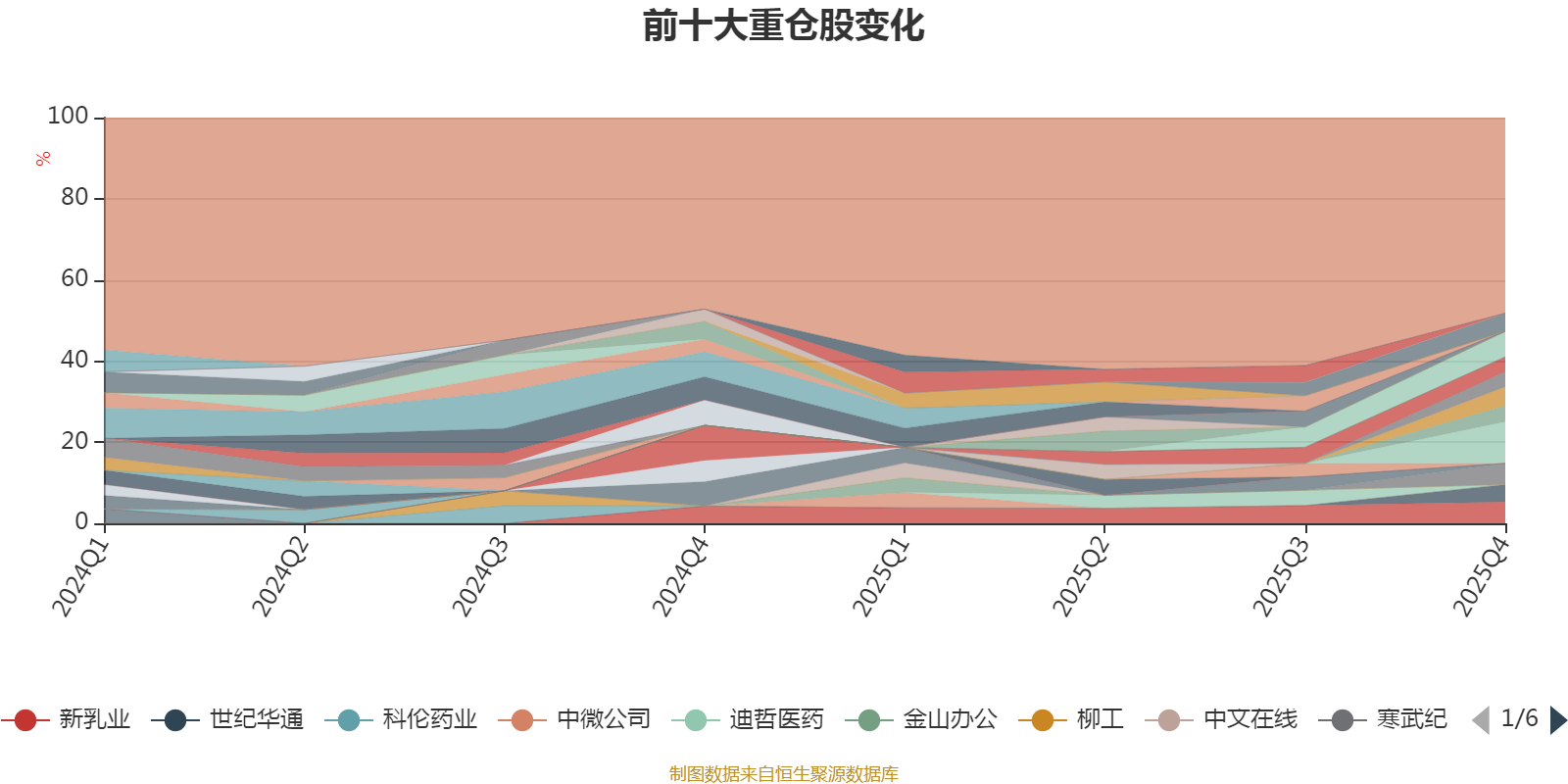 截至2025年末,基金十大重仓股分别是源飞宠物、渝农商行、新乳业、寒武纪、中国平安、紫金矿业、世纪华通、新澳股份、小商品城、若羽臣。