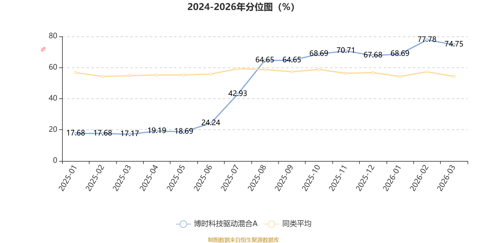 通过所选区间该基金净值增长率分位图,可以观察该基金与同类基金业绩比较情况。图为坐标原点到区间内某时点的净值增长率在同类基金中的分位数。