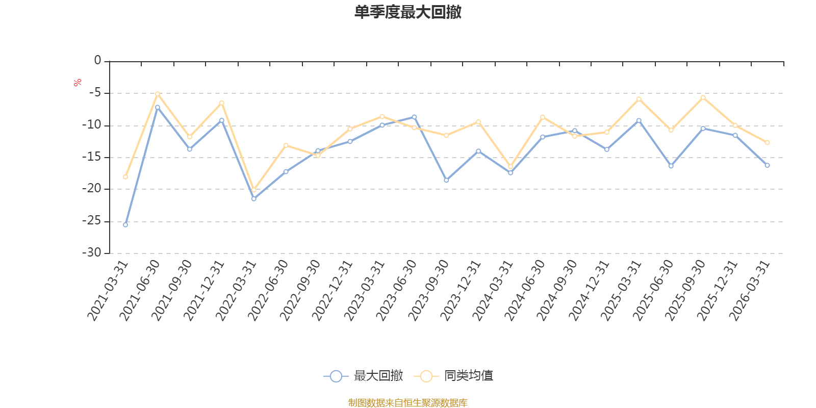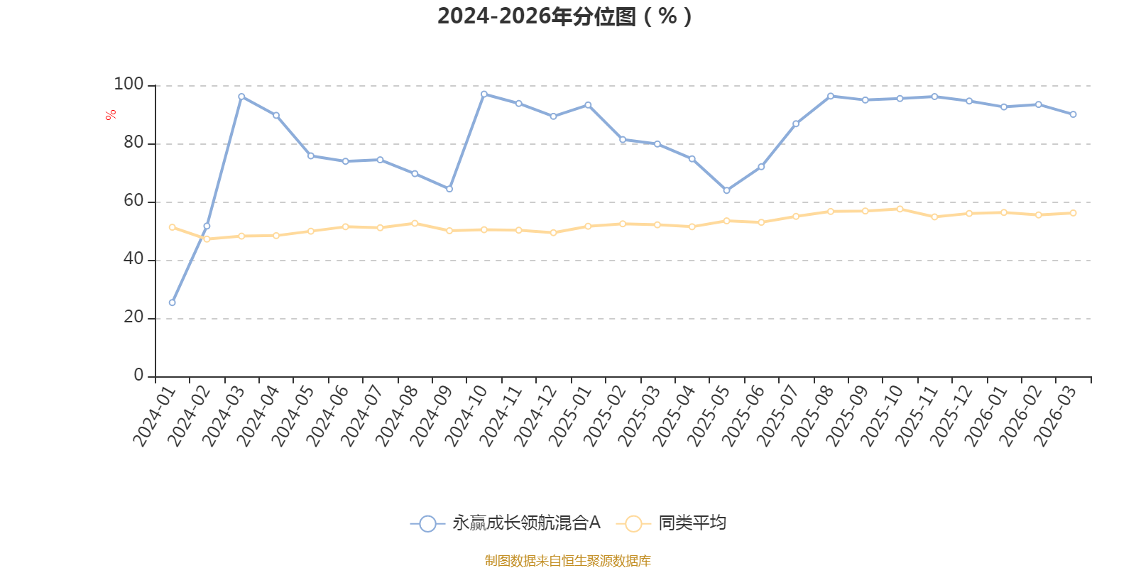 通过所选区间该基金净值增长率分位图,可以观察该基金与同类基金业绩比较情况。图为坐标原点到区间内某时点的净值增长率在同类基金中的分位数。