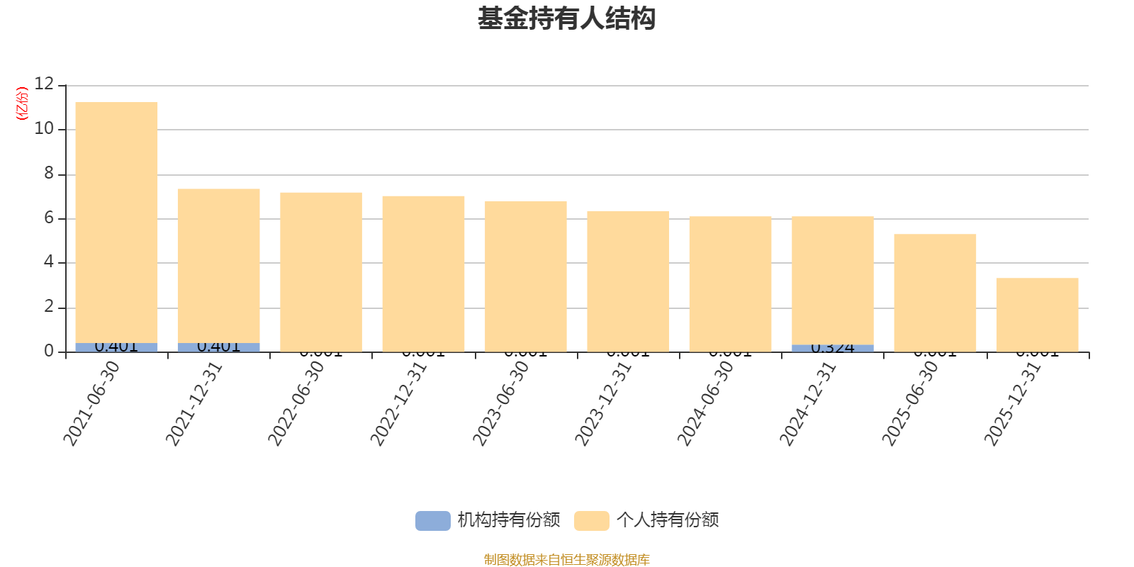 截至2025年12月31日,基金持有人共计1.04万户,合计持有3.32亿份。其中管理人员工持有43.66万份,占比0.13%,机构持有份额占比0.02%,个人投资者占比99.98%。