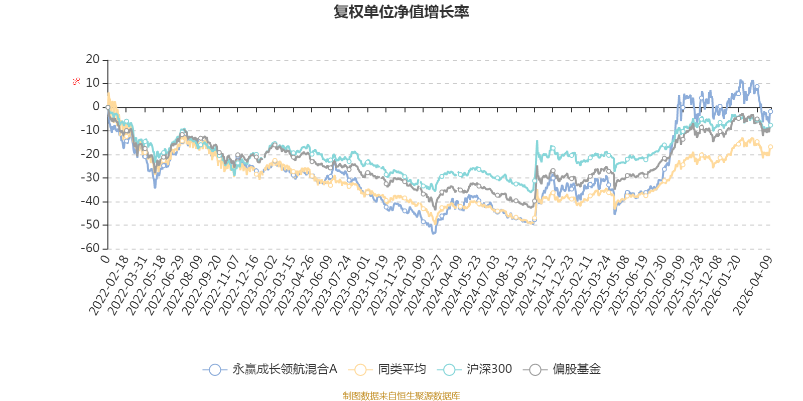 截至4月9日,永赢成长领航混合A近三个月复权单位净值增长率为-5.09%,位于同类可比基金464/621;近半年复权单位净值增长率为-5.67%,位于同类可比基金481/621;近一年复权单位净值增长率为74.41%,位于同类可比基金74/618;近三年复权单位净值增长率为33.43%,位于同类可比基金147/559。