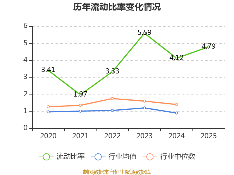 2025年,公司流动比率为4.79,速动比率为3.58。
