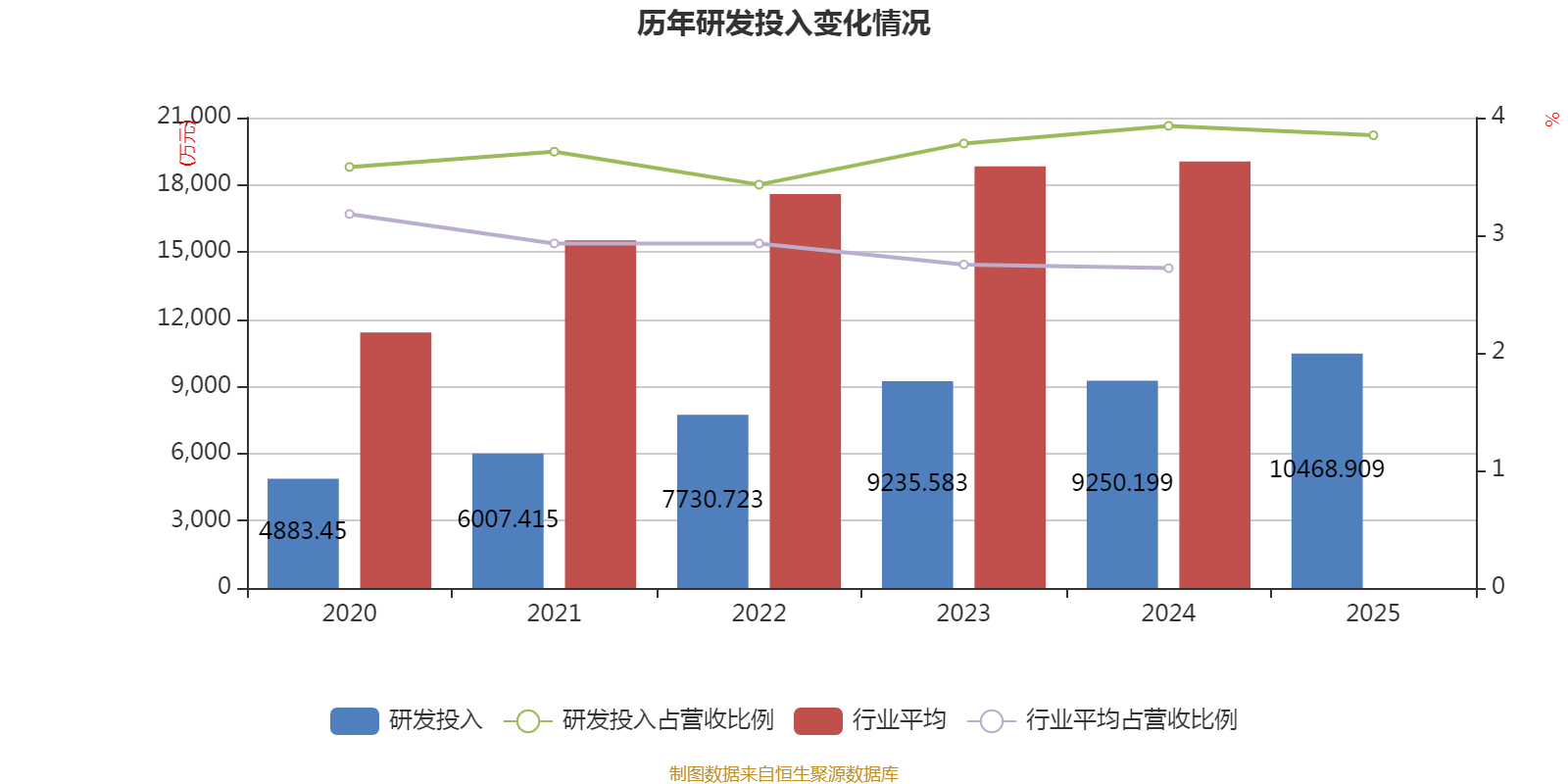 2025年全年,公司研发投入金额为1.05亿元,同比增长13.17%;研发投入占营业收入比例为3.85%,相比上年同期下降0.08个百分点。此外,公司全年研发投入资本化率为0%。