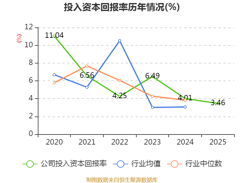 数据显示,2025年公司加权平均净资产收益率为3.08%,较上年同期下降1.81个百分点。公司2025年投入资本回报率为3.46%,较上年同期下降0.55个百分点。