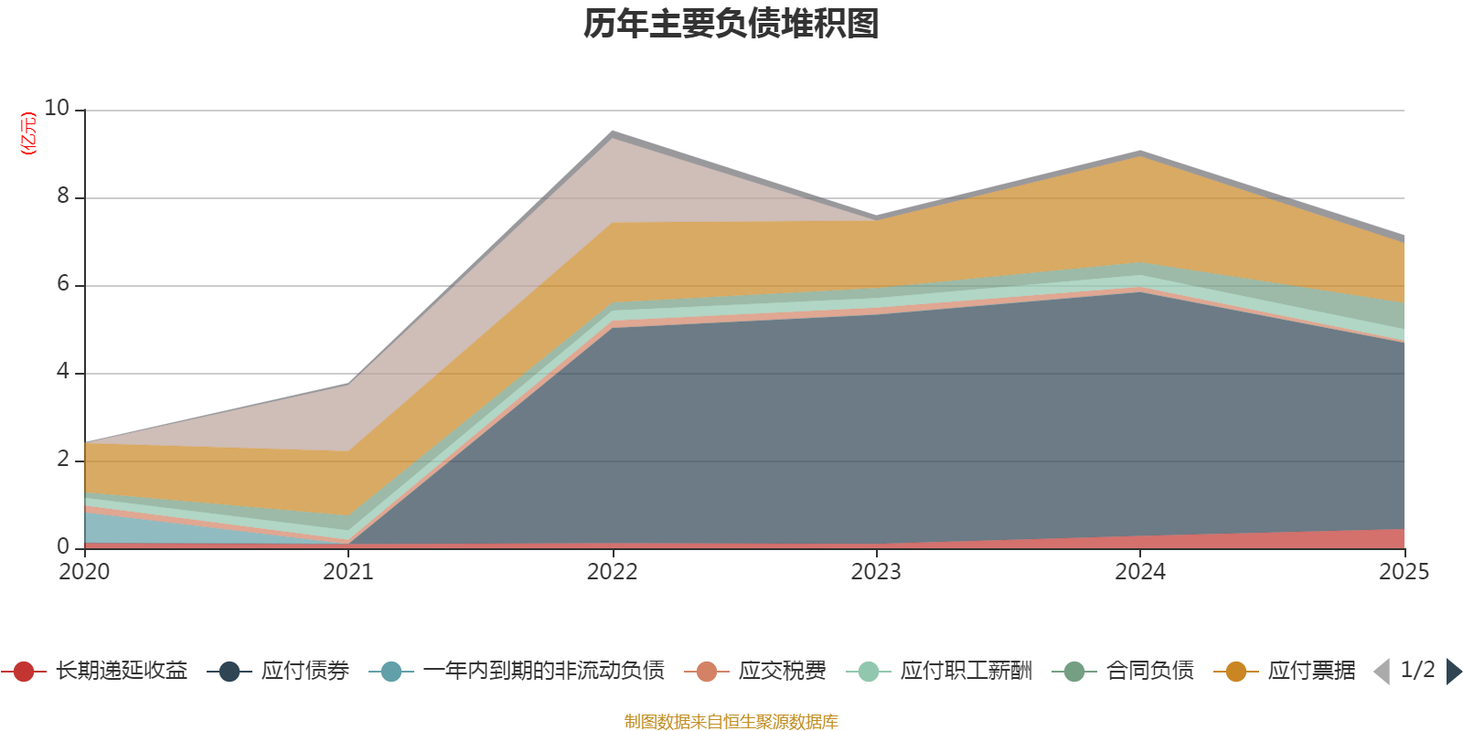 负债重大变化方面,截至2025年末,公司应付债券较上年末减少23.62%,占公司总资产比重下降3.65个百分点;应付票据及应付账款较上年末减少43.6%,占公司总资产比重下降3.53个百分点;合同负债较上年末增加105.9%,占公司总资产比重上升1.33个百分点;长期递延收益较上年末增加54.77%,占公司总资产比重上升0.71个百分点。