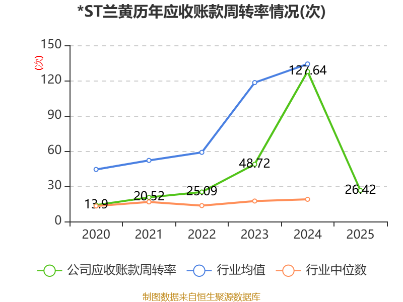 以4月10日收盘价计算,*ST兰黄目前市盈率(TTM)约为-19.32倍,市净率(LF)约4.81倍,市销率(TTM)约4.76倍。