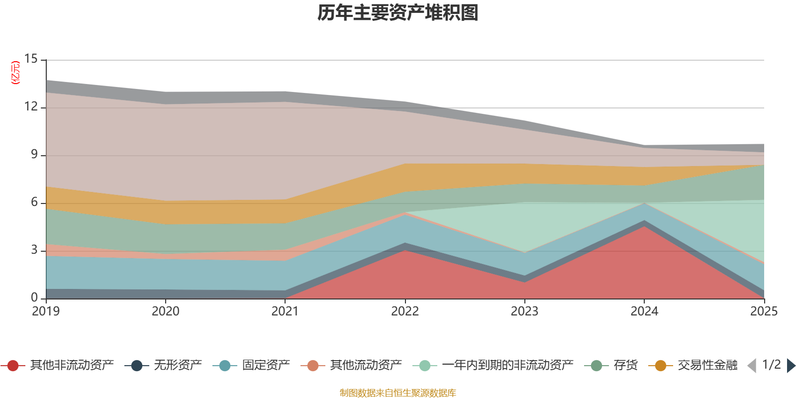 资产重大变化方面,截至2025年末,公司其他非流动资产较上年末减少99.81%,占公司总资产比重下降46.95个百分点;一年内到期的非流动资产占公司总资产的40.4%,上年末为0;交易性金融资产合计较上年末减少100%,占公司总资产比重下降12.07个百分点;存货较上年末增加102.11%,占公司总资产比重上升11.34个百分点。