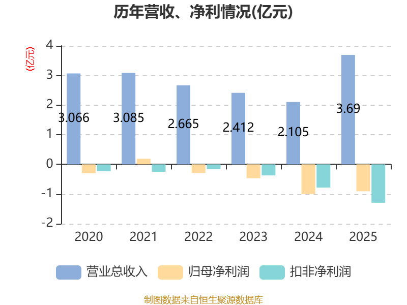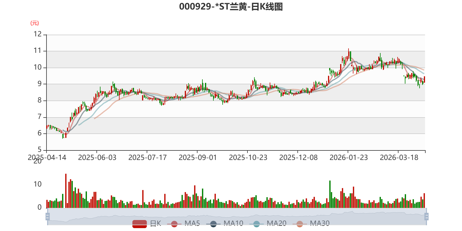 中证智能财讯 *ST兰黄(000929)4月13日披露2025年年度报告。2025年,公司实现营业总收入3.69亿元,同比增长75.28%;归母净利润亏损9093.95万元,上年同期亏损9987万元;扣非净利润亏损1.29亿元,上年同期亏损7815.75万元;经营活动产生的现金流量净额为-2.27亿元,上年同期为-8481.29万元;报告期内,*ST兰黄基本每股收益为-0.4935元,加权平均净资产收益率为-20.64%。