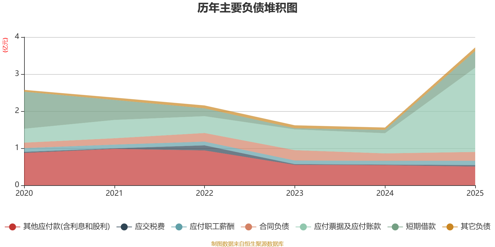 负债重大变化方面,截至2025年末,公司应付票据及应付账款较上年末增加316.48%,占公司总资产比重上升17.75个百分点;短期借款较上年末增加394.84%,占公司总资产比重上升3.67个百分点;其他应付款(含利息和股利)较上年末减少7.06%,占公司总资产比重下降0.44个百分点;合同负债较上年末增加19.89%,占公司总资产比重上升0.39个百分点。