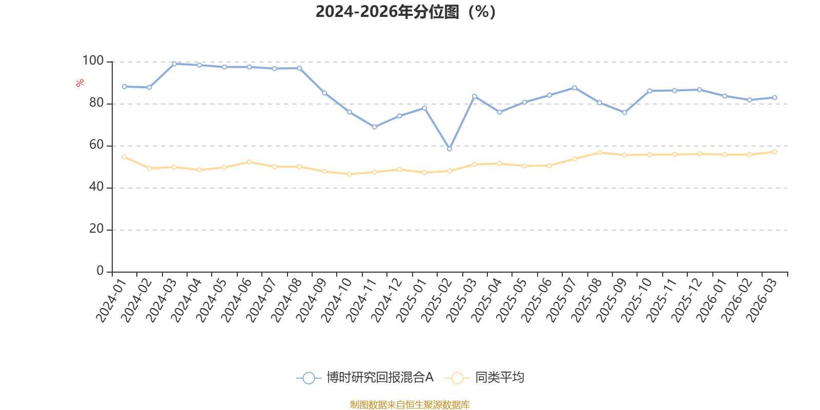 通过所选区间该基金净值增长率分位图,可以观察该基金与同类基金业绩比较情况。图为坐标原点到区间内某时点的净值增长率在同类基金中的分位数。