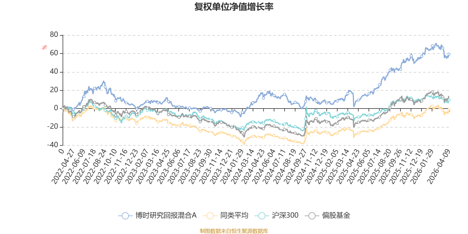 截至4月9日,博时研究回报混合A近三个月复权单位净值增长率为-3.67%,位于同类可比基金463/689;近半年复权单位净值增长率为6.12%,位于同类可比基金216/689;近一年复权单位净值增长率为54.13%,位于同类可比基金176/685;近三年复权单位净值增长率为47.37%,位于同类可比基金51/417。