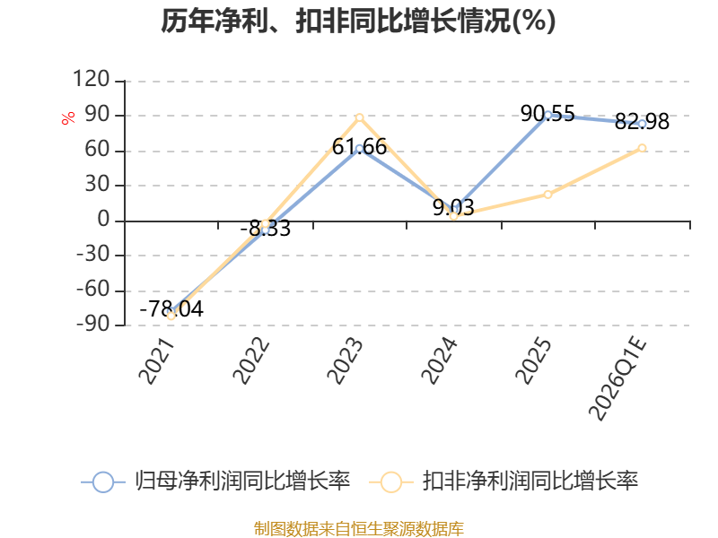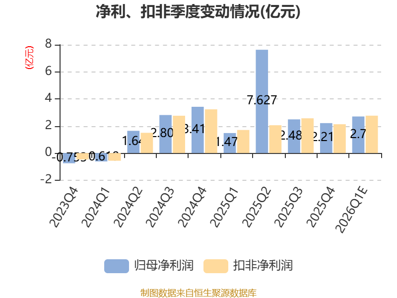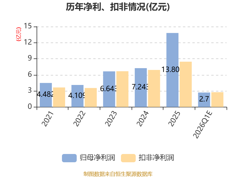 据公告,业绩变动原因为, 2026年第一季度,公司稳步推进各项经营战略落地,经初步测算,预计报告期内归属于上市公司股东的净利润2.5亿元-2.9亿元,同比增长69.43%—96.54%。继上年同期创下历史新高后,公司业绩延续高增长态势,再次录得历史同期最佳盈利水平(剔除2019-2020年因特殊市场环境形成的特殊时期)。