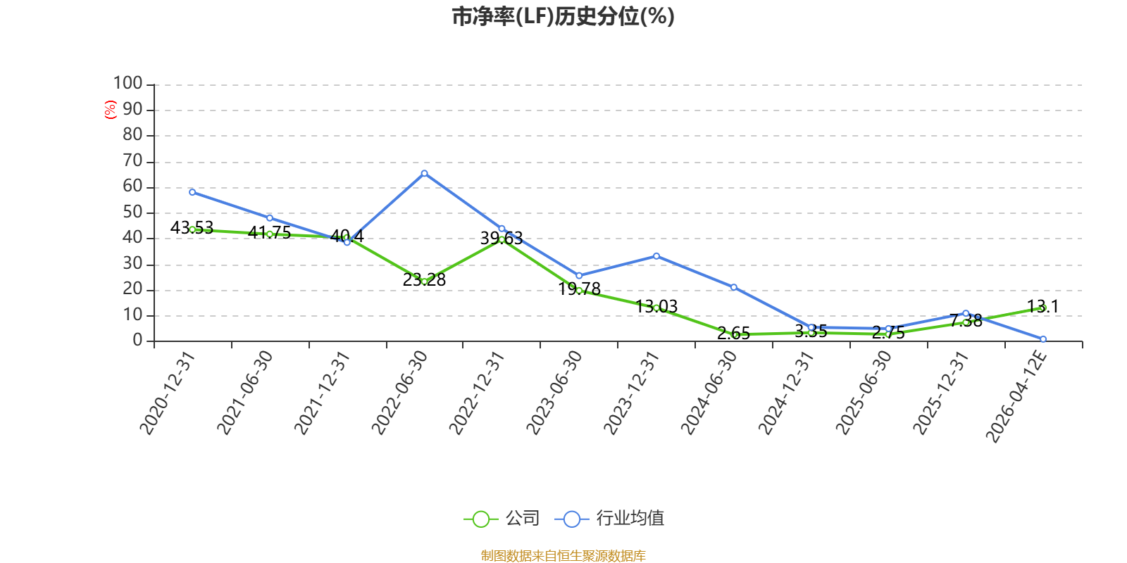 市盈率、市净率为负时,不显示当期分位数,会导致折线图中断。