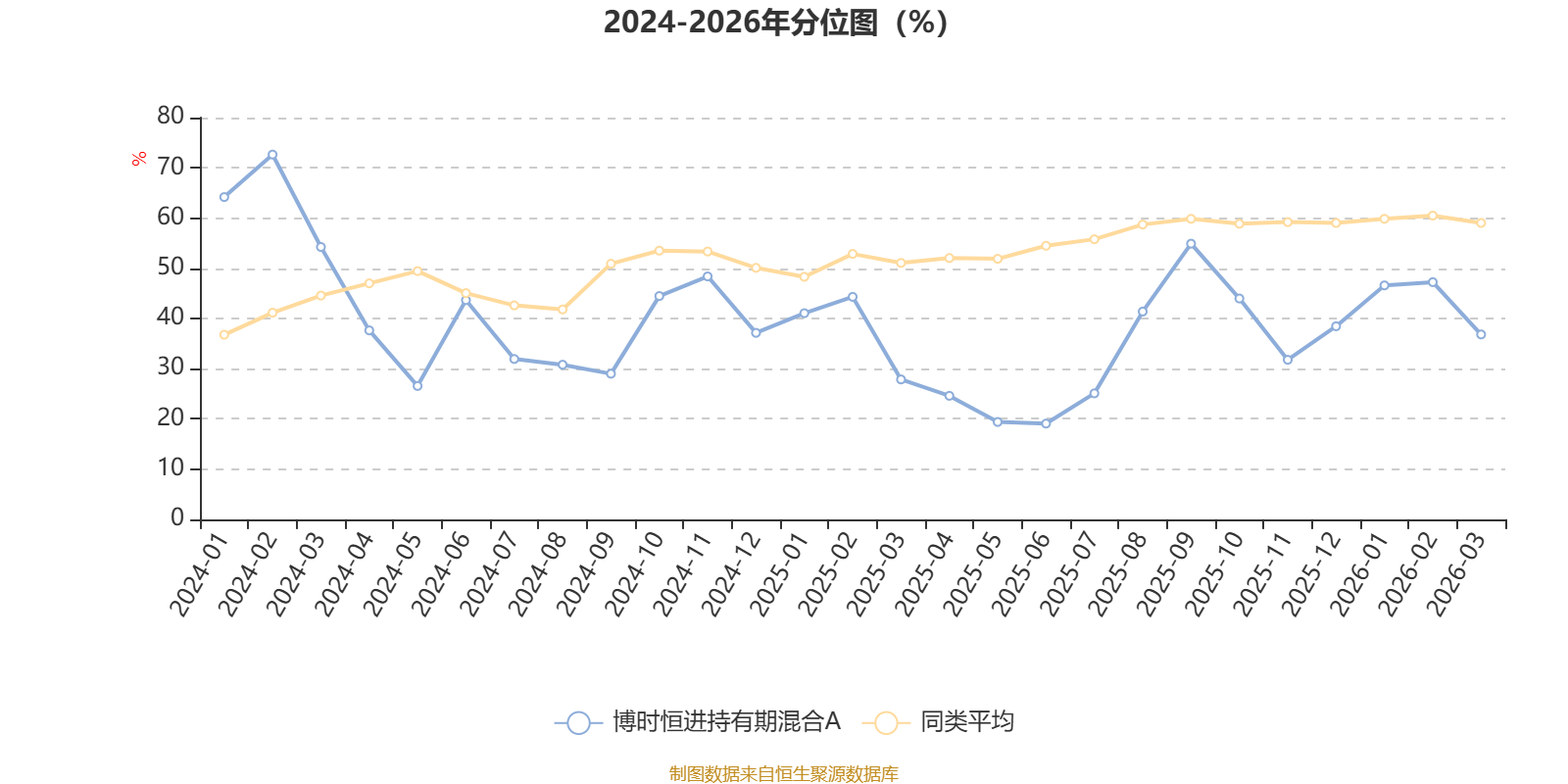 通过所选区间该基金净值增长率分位图,可以观察该基金与同类基金业绩比较情况。图为坐标原点到区间内某时点的净值增长率在同类基金中的分位数。