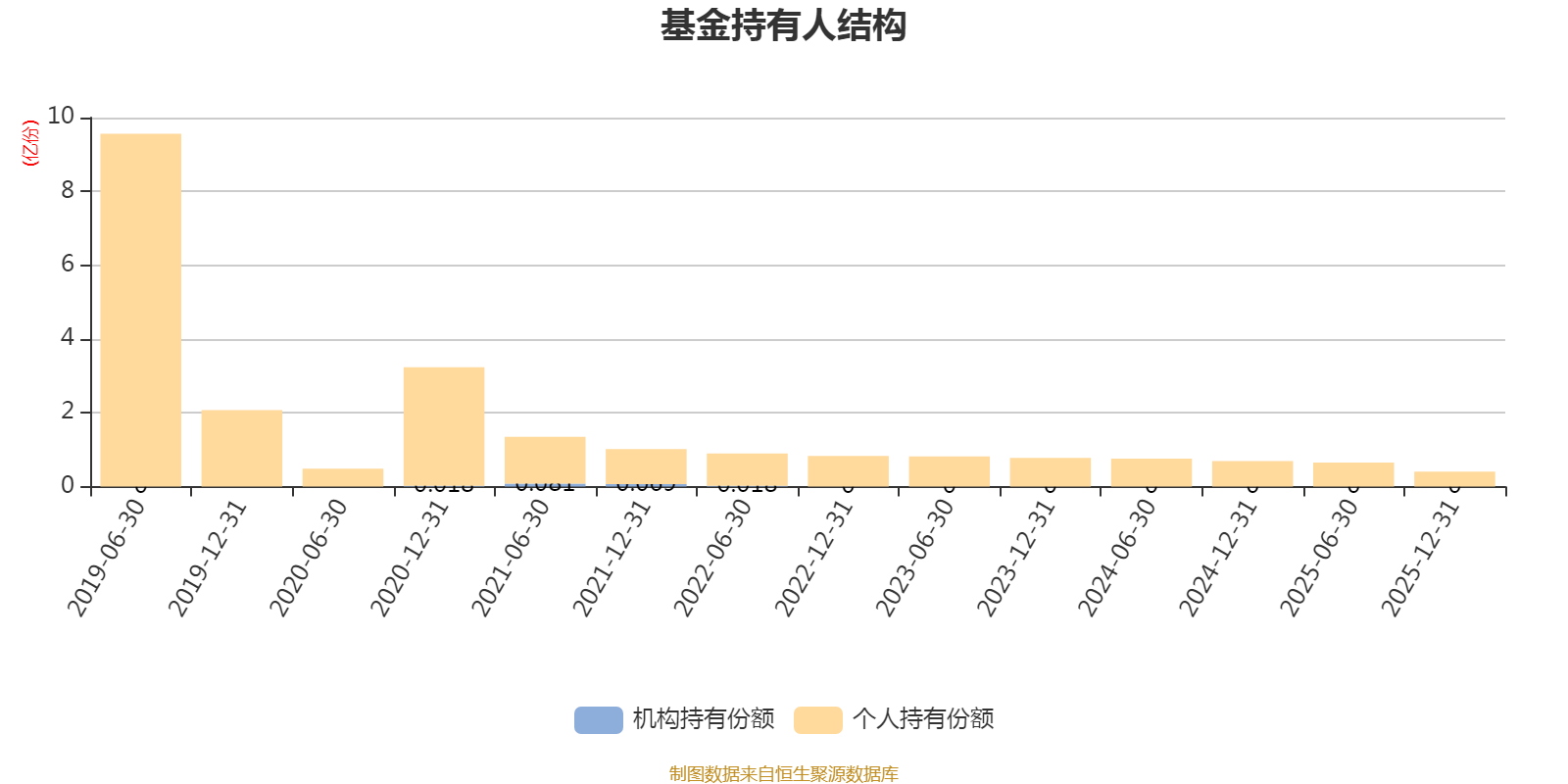 截至2025年12月31日,基金持有人共计5743户,合计持有4056.43万份。其中管理人员工持有24.88万份,占比0.61%,机构持有份额占比0.00%,个人投资者占比100.00%。