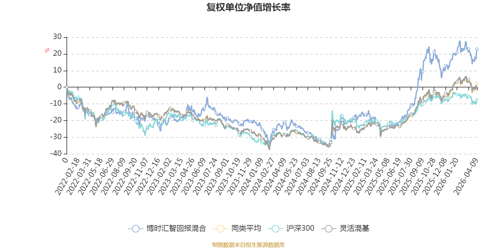 截至4月9日,博时汇智回报混合近三个月复权单位净值增长率为2.22%,位于同类可比基金321/1287;近半年复权单位净值增长率为-1.28%,位于同类可比基金886/1286;近一年复权单位净值增长率为70.16%,位于同类可比基金185/1286;近三年复权单位净值增长率为37.02%,位于同类可比基金257/1286。