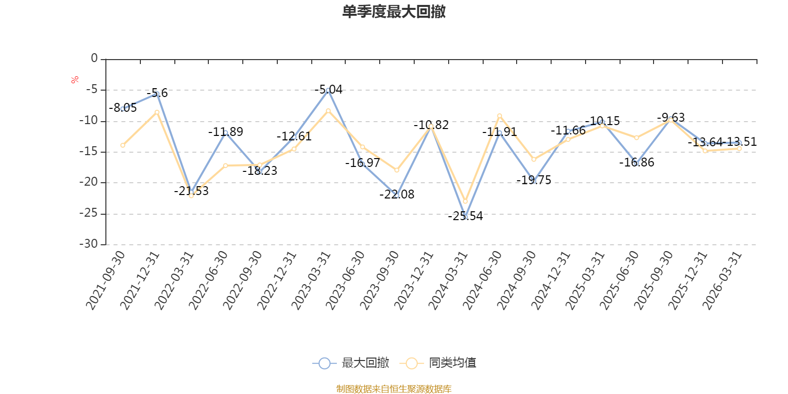 截至4月9日,基金近三年最大回撤为48.1%,同类可比基金排名138/168。单季度最大回撤出现在2024年一季度,为25.54%。