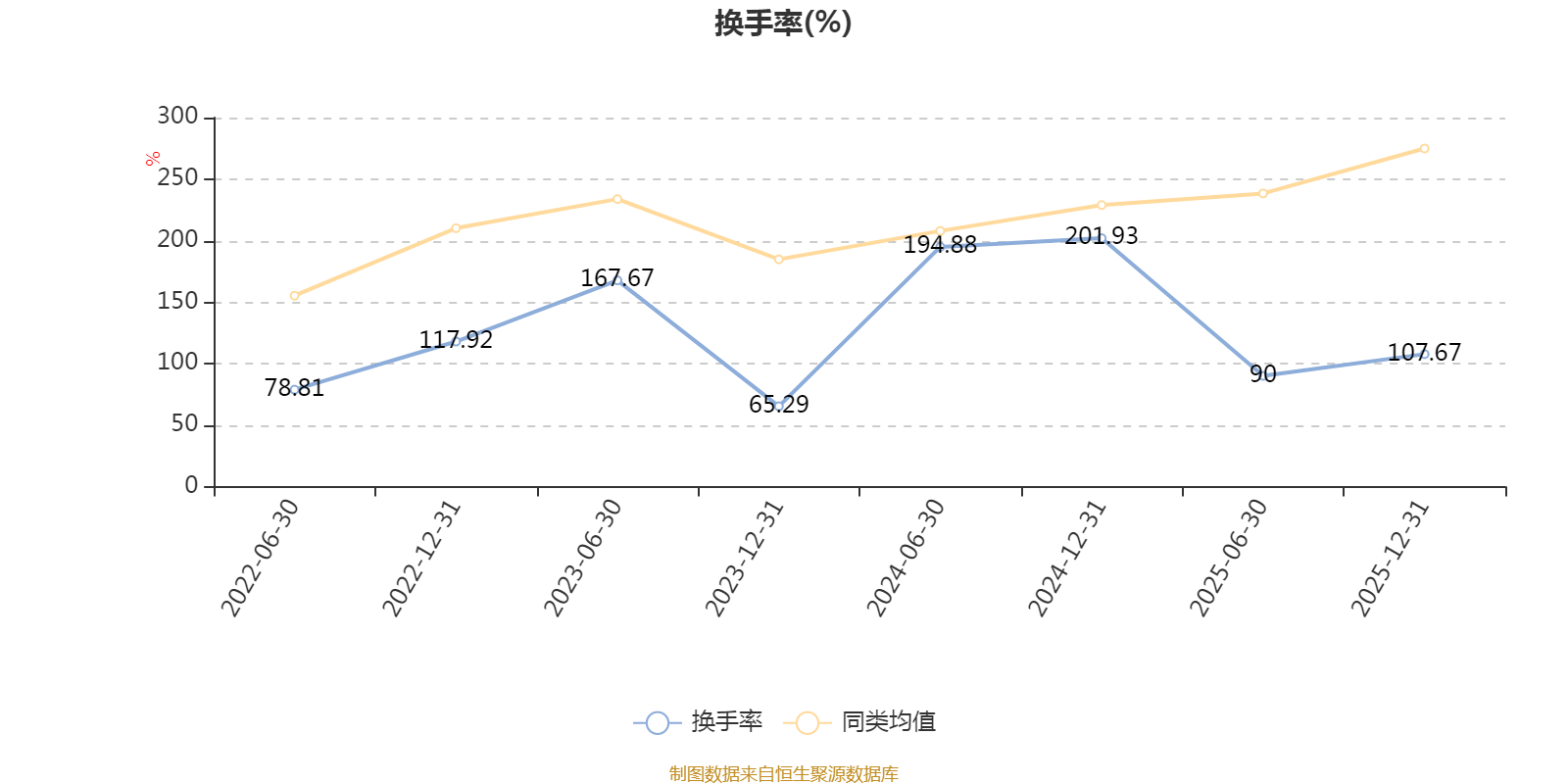 截至2025年12月31日,基金最近一年换手率约198.47%,持续低于同类均值。