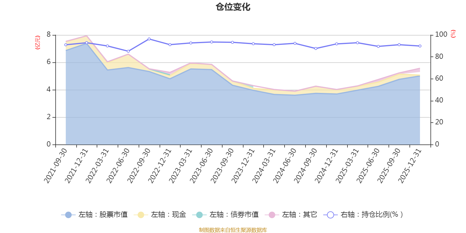 据定期报告数据统计,近三年平均股票仓位为91.5%,同类平均为86.9%。2022年三季度末基金达到96.33%的最高仓位,2022年上半年末最低,为85.16%。