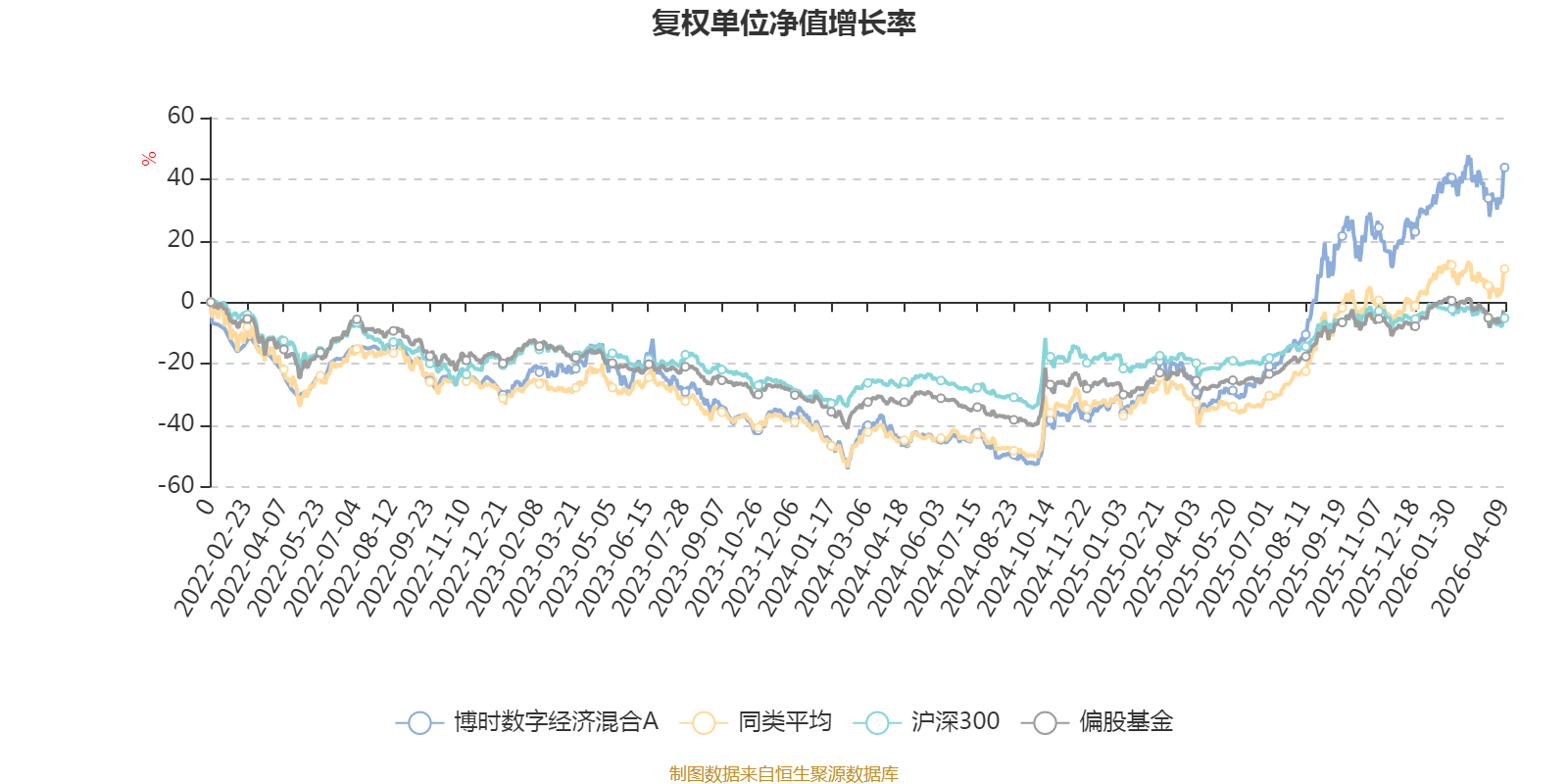 截至4月9日,博时数字经济混合A近三个月复权单位净值增长率为7.87%,位于同类可比基金55/229;近半年复权单位净值增长率为13.48%,位于同类可比基金65/229;近一年复权单位净值增长率为129.09%,位于同类可比基金38/229;近三年复权单位净值增长率为66.51%,位于同类可比基金44/171。