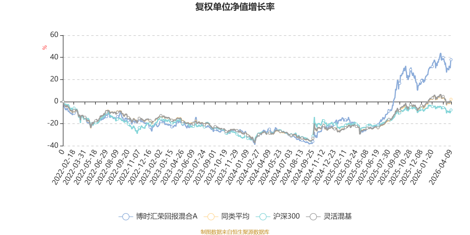 截至4月9日,博时汇荣回报混合A近三个月复权单位净值增长率为5.37%,位于同类可比基金180/1287;近半年复权单位净值增长率为4.24%,位于同类可比基金468/1286;近一年复权单位净值增长率为94.07%,位于同类可比基金98/1286;近三年复权单位净值增长率为65.22%,位于同类可比基金81/1286。