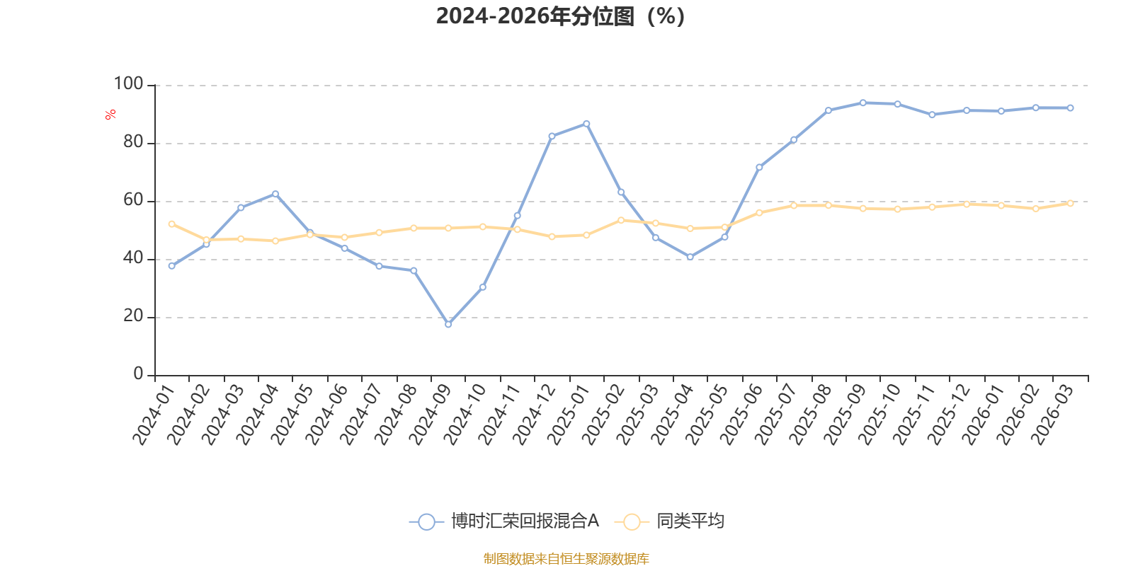 通过所选区间该基金净值增长率分位图,可以观察该基金与同类基金业绩比较情况。图为坐标原点到区间内某时点的净值增长率在同类基金中的分位数。