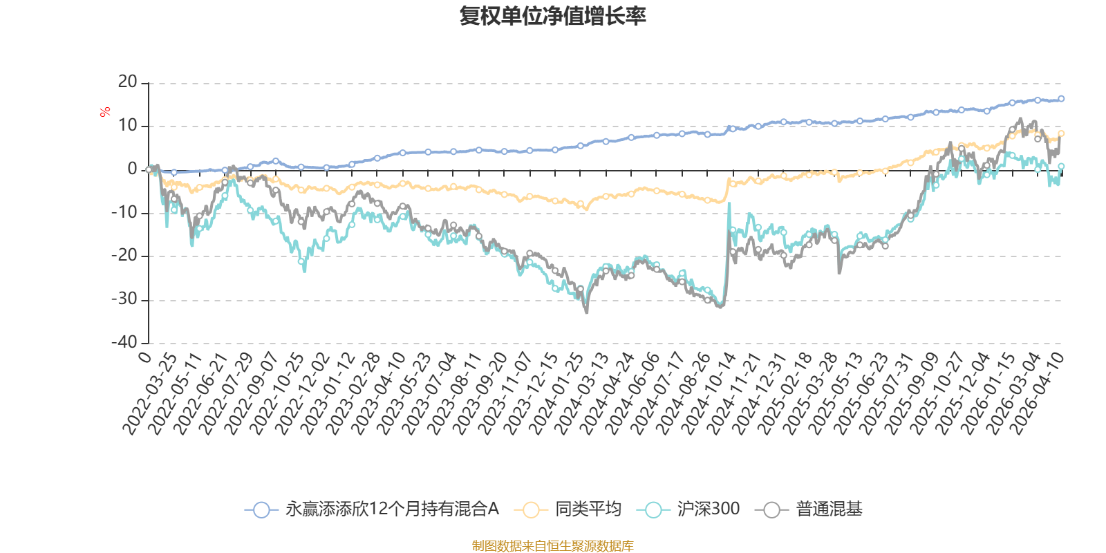 截至4月10日,永赢添添欣12个月持有混合A近三个月复权单位净值增长率为0.98%,位于同类可比基金168/630;近半年复权单位净值增长率为2.42%,位于同类可比基金197/630;近一年复权单位净值增长率为4.83%,位于同类可比基金459/630;近三年复权单位净值增长率为12.02%,位于同类可比基金261/587。