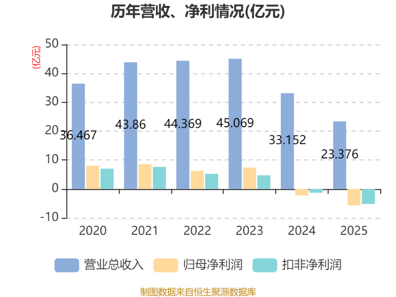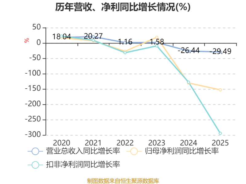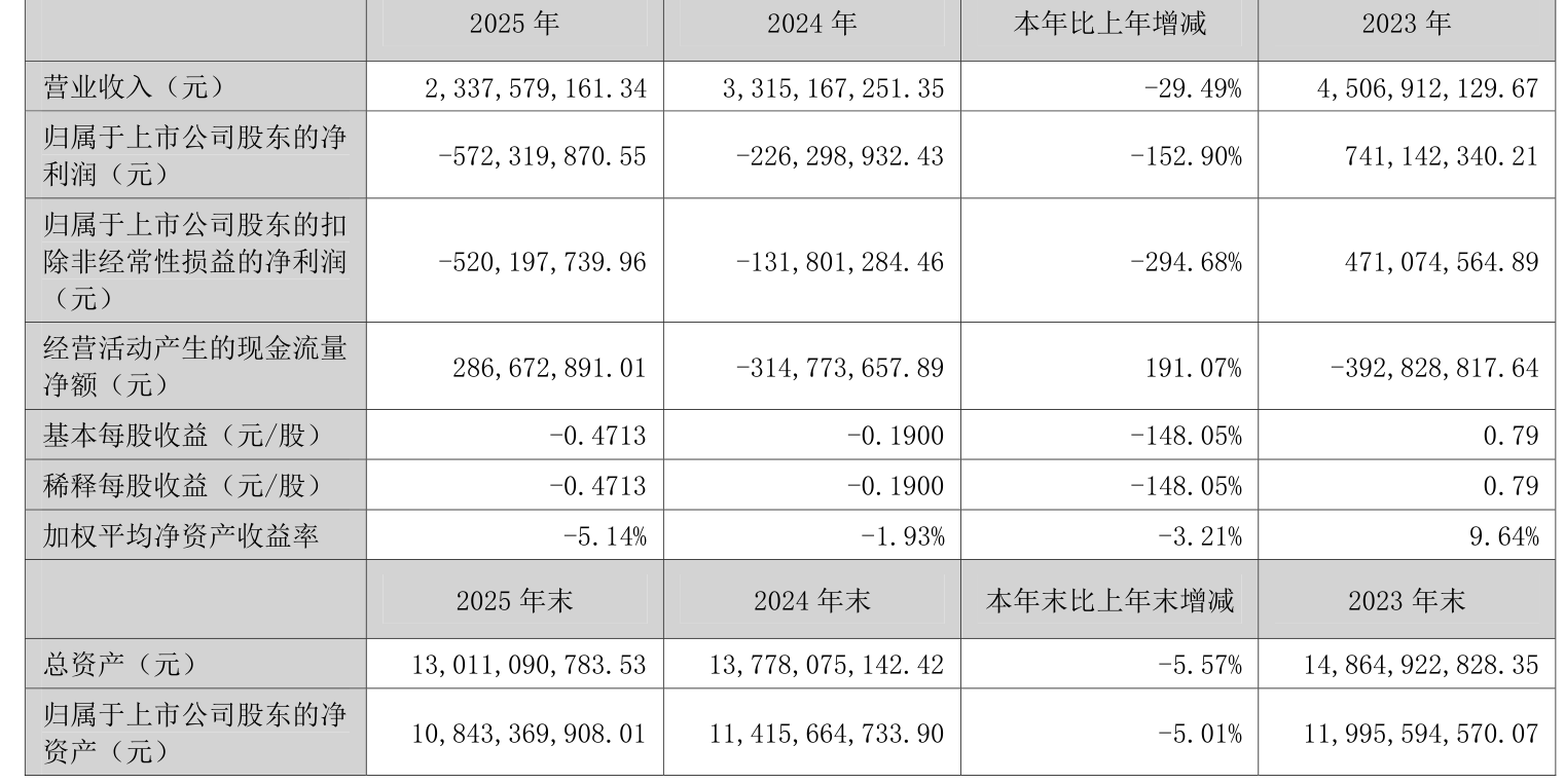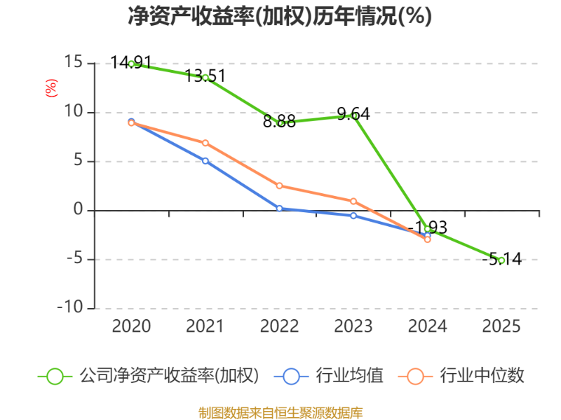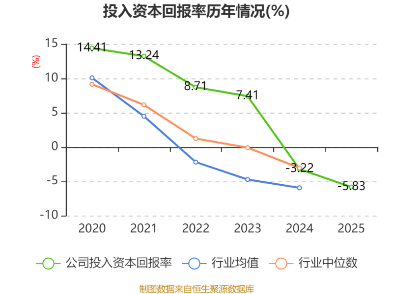 数据显示,2025年公司加权平均净资产收益率为-5.14%,较上年同期下降3.21个百分点。公司2025年投入资本回报率为-5.83%,较上年同期下降2.61个百分点。